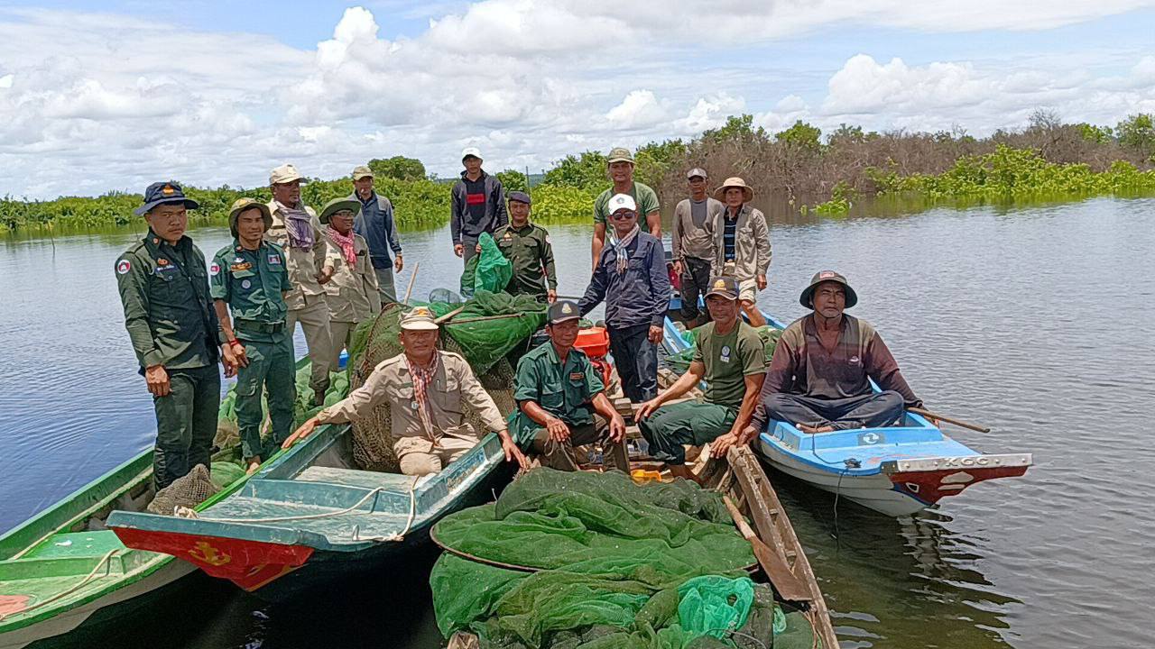 មន្រ្តីជាន់ខ្ពស់ ក្រសួងកសិកម្ម ដឹកនាំកម្លាំងចម្រុះ ចុះបង្ក្រាបបទល្មើសនេសាទនៅភូមិសាស្ត្រឃុំចំនួនពីរ ក្នុងស្រុកព្រែកប្រសព្វ ខេត្តក្រចេះ