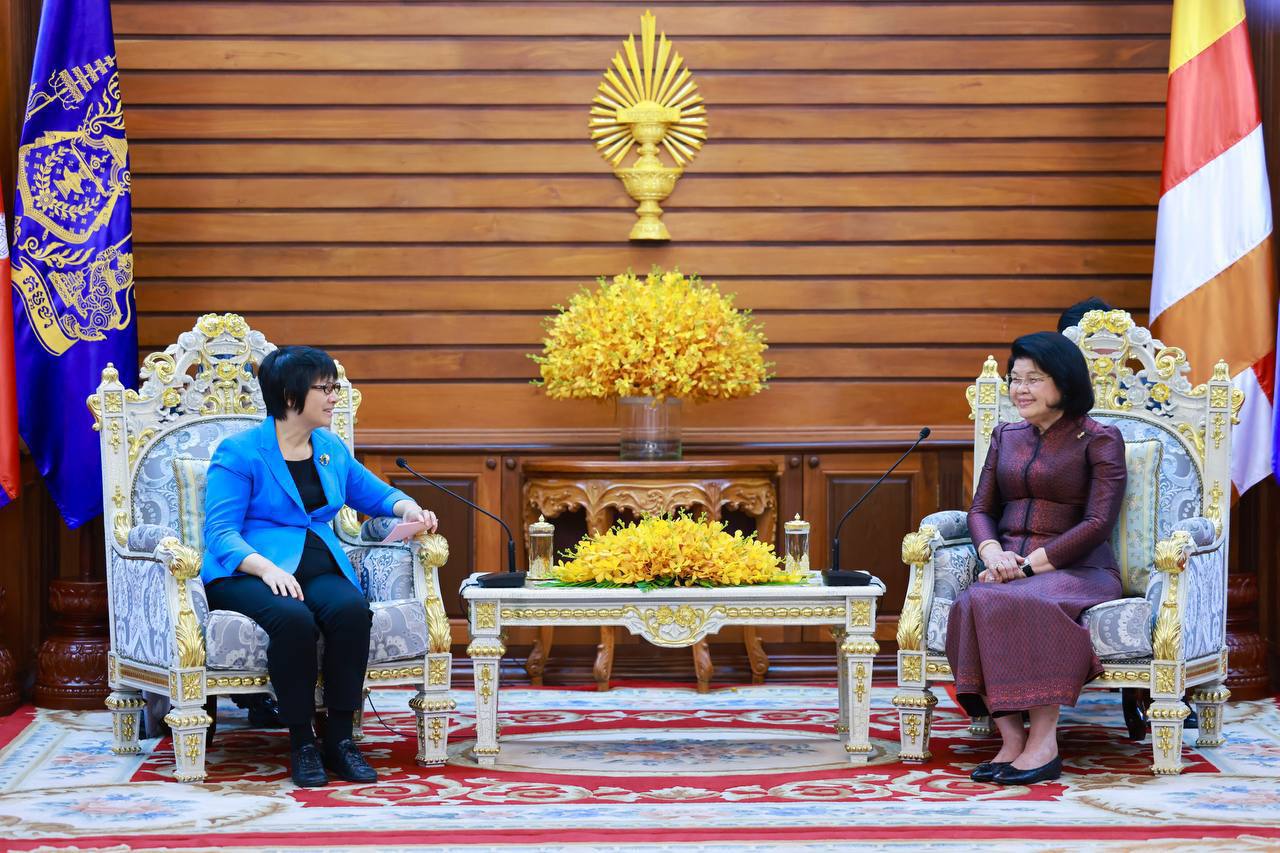 (ភ្នំពេញ)៖ សម្តេចមហារដ្ឋសភាធិការធិបតី ឃួន សុដារី ប្រធានរដ្ឋសភាកម្ពុជា នាព្រឹកថ្ងៃទី០៣ ខែកញ្ញានេះ បានទទួលជួបសម្តែងការគួរសម និងពិភាក្សាការងារជាមួយ គណៈប្រតិភូចិន ដឹកនាំដោយលោកជំទាវ ចុង មីង (Zong Ming ) អនុប្រធានគណៈកម្មាធិការអចិន្រ្ដៃយ៍សភាតំណាងប្រជាជនក្រុងសៀងហៃ ប្រទេសចិន ។