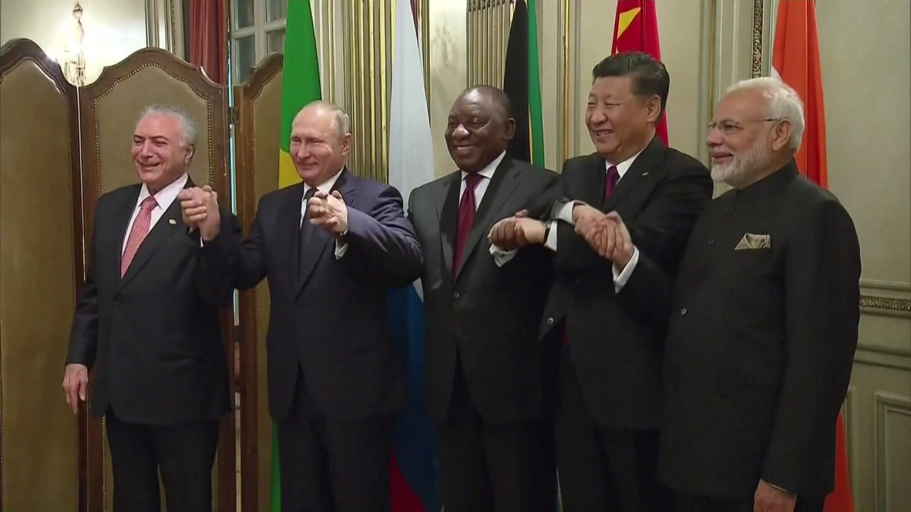 ក្រុមប្រទេស BRICS ក្នុងនោះរួមមានប្រេស៊ីល រុស្ស៊ី ឥណ្ឌា ចិន និងអាហ្វ្រិកខាងត្បូង ដែលតំណាងឱ្យស្ទើរតែពាក់កណ្តាល នៃចំនួនប្រជាជនពិភពលោក ហើយចាប់តាំងពីពេលនោះមក ត្រូវបានពង្រីកដើម្បីរួមបញ្ចូលប្រទេសដែលមានសេដ្ឋកិច្ចកំពុងរីកចម្រើនសំខាន់ៗផ្សេងទៀត រួមមាន អារ៉ាប់រួម និងអ៊ីរ៉ង់។