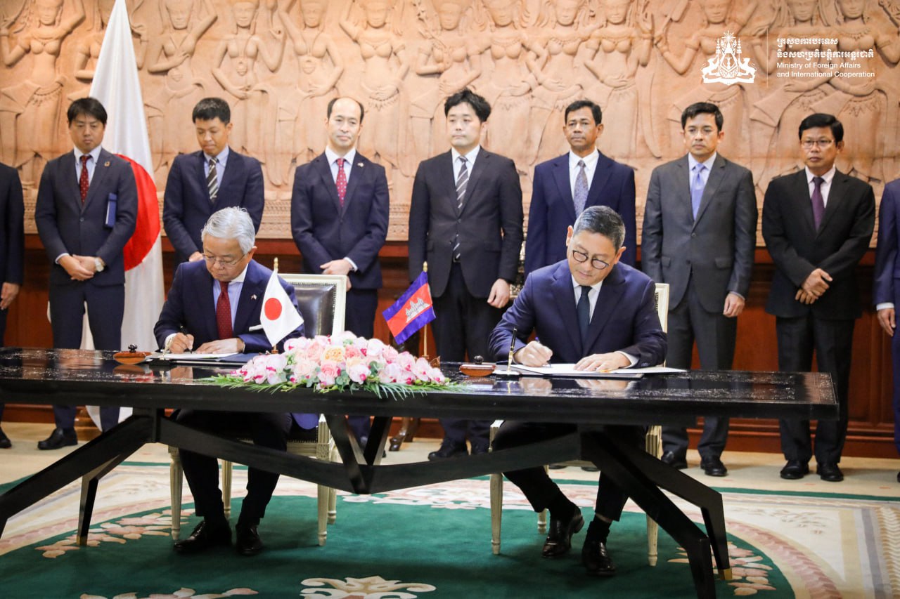 ពិធីចុះហត្ថលេខាធ្វើឡើងរវាងឯកឧត្តម ឧបនាយករដ្ឋមន្ត្រី សុខ ចិន្តាសោភា រដ្ឋមន្ត្រីក្រសួងការបរទេស និងសហប្រតិបត្តិការអន្តរជាតិ និងឯកឧត្តម អ៊ុអិណុ អាតស៊ុស៊ី (UENO Atsushi) ឯកអគ្គរាជទូតវិសាមញ្ញ និងពេញសមត្ថភាពរបស់ប្រទេសជប៉ុន ប្រចាំព្រះរាជាណាចក្រកម្ពុជា។