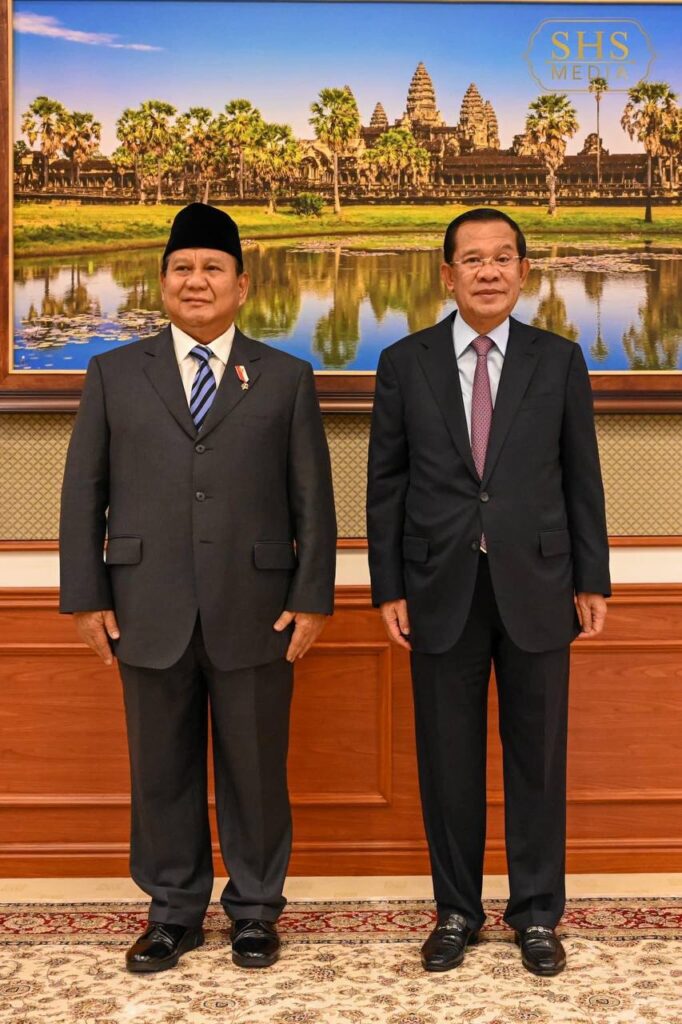 ក្នុងជំនួបសម្តេចតេជោ ហ៊ុន សែន ប្រមុខរដ្ឋស្តីទី បានអបអរសាទរចំពោះ ឯកឧត្តម Prabowo Subianto ដែលត្រូវបានជាប់ឆ្នោតជាប្រធានាធិបតីឥណ្ឌូនេស៊ី។សម្ដេចតេជោក៏បានស្វាគមន៍ចំពោះដំណើរទស្សនកិច្ចរបស់ឯកឧត្តមមកកាន់ព្រះរាជាណាចក្រកម្ពុជានៅពេលនេះ។