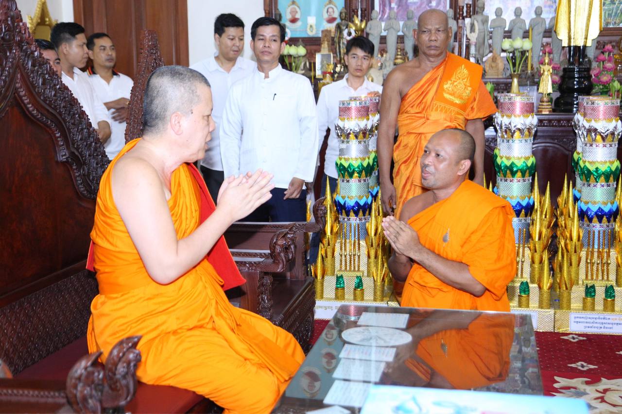 ព្រះរតនសោភ័ណ ម៉ន បឿន នាំយកអង្ករ ១តោន និងបច្ច័យមួយចំនួនប្រគេនសម្តេចព្រះពោធិវ័ង្សកិត្តិបណ្ឌិត អំ លីមហេង សម្តេចព្រះសង្ឃនាយកស្តីទី ដើម្បីឧបត្ថម្ភព្រះសង្ឃសិក្សារៀនសូត្រ