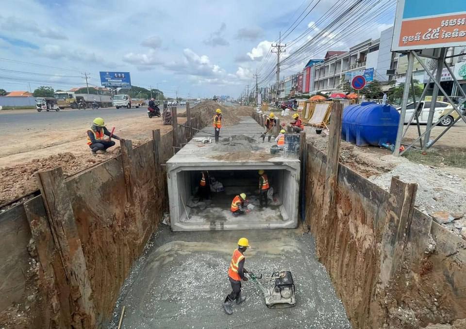 (ភ្នំពេញ)៖ ការដ្ឋានដាក់លូប្រអប់ទំហំ ៤ម៉ែត្រx២ម៉ែត្រ នៅផ្លូវជាតិលេខ៤ ប្រវែវ ៥៦៥០ម៉ែត្រ ក្នុងសង្កាត់ចោមចៅទី៣ ខណ្ឌពោធិសែនជ័យ និងគម្រោងស្ថាបនា ជញ្ជាំងបេតុងនៃប្រឡាយបារាំង ចាប់ពីផ្លូវមហាវិថី ស៊ី ជីនពីង ដល់អាកាសយាន ដ្ឋានអន្តរជាតិភ្នំពេញ ដែលជាគម្រោងផែនការវិនិយោគហេដ្ឋារចនាសម្ព័ន្ឋ ប្រព័ន្ឋលូ និងប្រព័ន្ឋរំដោះទឹកសម្រាប់បញ្ចៀសការជន់លិចក្នុងភូមិសាស្ត្ររាជធានីភ្នំពេញ គិតត្រឹមថ្ងៃទី១២ និង ១៣កញ្ញានេះ សម្រេចបានជាង ១០ភាគរយហើយ ។