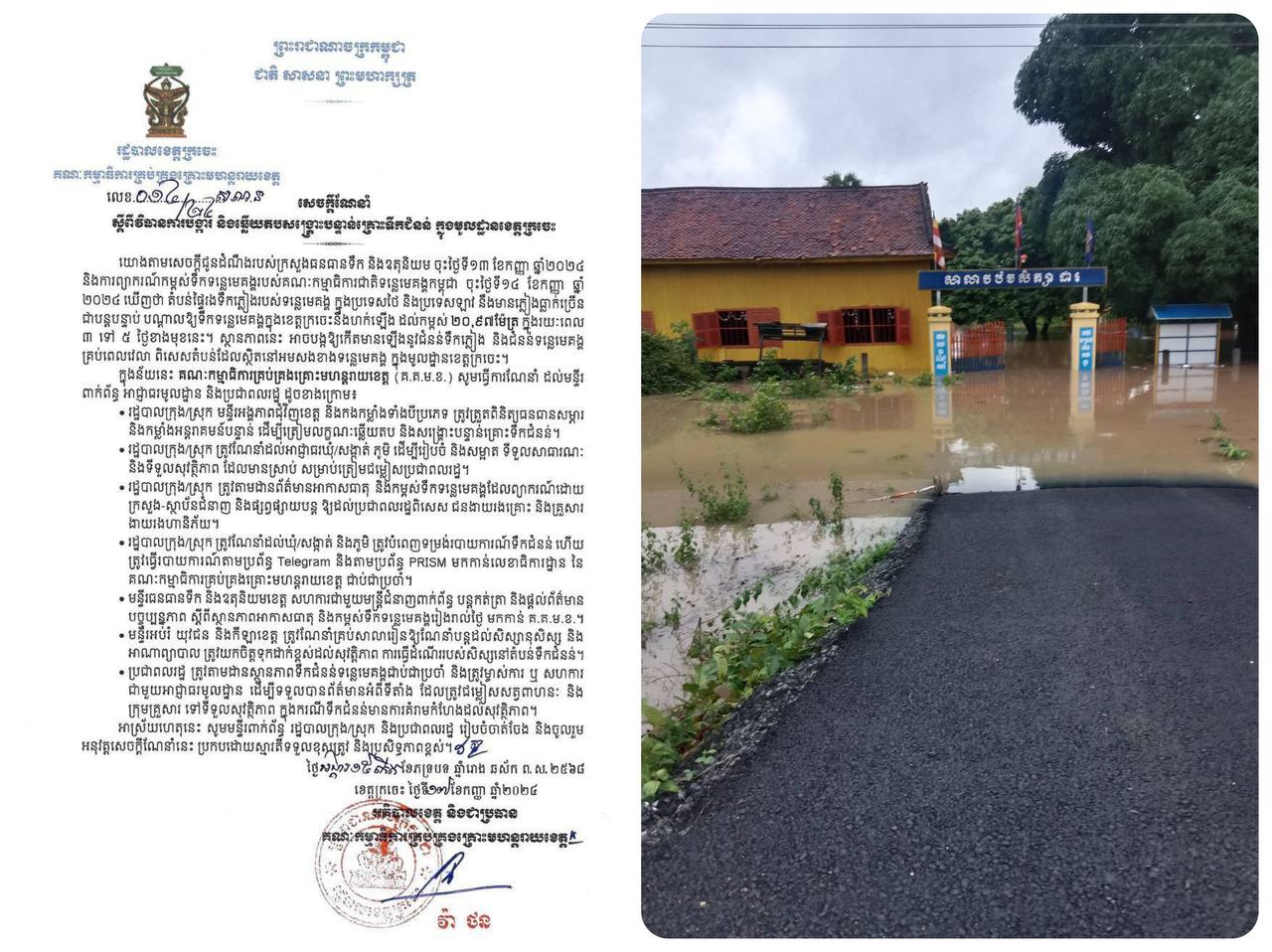 ប្រភពដដែលបន្តថា គណៈកម្មាធិការគ្រប់គ្រងគ្រោះមហន្តរាយខេត្ត (គ.គ.ម.ខ.) សូមធ្វើការណែនាំ ដល់មន្ទីរ ពាក់ព័ន្ធ អាជ្ញាធរមូលដ្ឋាន និងប្រជាពលរដ្ឋ ដូចតទៅ៖ រដ្ឋបាលក្រុងស្រុក មន្ទីរអង្គភាពជុំវិញខេត្ត និងកងកម្លាំងទាំងបីប្រភេទ ត្រូវត្រួតពិនិត្យធនធានសម្ភារ និងកម្លាំងអន្តរាគមន៍បន្ទាន់ ដើម្បីត្រៀមលក្ខណៈឆ្លើយតប និងសង្គ្រោះបន្ទាន់គ្រោះទឹកជំនន់។រដ្ឋបាលក្រុងស្រុក ត្រូវណែនាំដល់អាជ្ញាធរឃុំ/សង្កាត់ ភូមិ ដើម្បីរៀបចំ និងសម្អាត ទីទួលសាធារណៈ និងទីទួលសុវត្ថិភាព ដែលមានស្រាប់ សម្រាប់ត្រៀមជម្លៀសប្រជាពលរដ្ឋ។ រដ្ឋបាលក្រុងស្រុក ត្រូវតាមដានព័ត៌មានអាកាសធាតុ និងកម្ពស់ទឹកទន្លេមេគង្គដែលព្យាករណ៍ដោយ ក្រសួង-ស្ថាប័នជំនាញ និងផ្សព្វផ្សាយបន្ត ឱ្យដល់ប្រជាពលរដ្ឋពិសេស ជនងាយរងគ្រោះ និងគ្រួសារ ងាយរងហានិភ័យ។រដ្ឋបាលក្រុង/ស្រុក ត្រូវណែនាំដល់ឃុំ/សង្កាត់ និងភូមិ ត្រូវបំពេញទម្រង់របាយការណ៍ទឹកជំនន់ ហើយត្រូវធ្វើរបាយការណ៍តាមប្រព័ន្ធ Telegram និងតាមប្រព័ន្ធ PRISM មកកាន់លេខាធិការដ្ឋាន នៃគណៈកម្មាធិការគ្រប់គ្រងគ្រោះមហន្តរាយខេត្ត ជាប់ជាប្រចាំ។មន្ទីរធនធានទឹក និងឧតុនិយមខេត្ត សហការជាមួយមន្ត្រីជំនាញពាក់ព័ន្ធ បន្តកត់ត្រា និងផ្តល់ព័ត៌មាន បច្ចុប្បន្នភាព ស្តីពីស្ថានភាពអាកាសធាតុ និងកម្ពស់ទឹកទន្លេមេគង្គរៀងរាល់ថ្ងៃ មកកាន់ គ.គ.ម.ខ.។មន្ទីរអប់រំ យុវជន និងកីឡាខេត្ត ត្រូវណែនាំគ្រប់សាលារៀនឱ្យណែនាំបន្តដល់សិស្សានុសិស្ស និង អាណាព្យាបាល ត្រូវយកចិត្តទុកដាក់ខ្ពស់ដល់សុវត្ថិភាព ការធ្វើដំណើររបស់សិស្សនៅតំបន់ទឹកជំនន់។