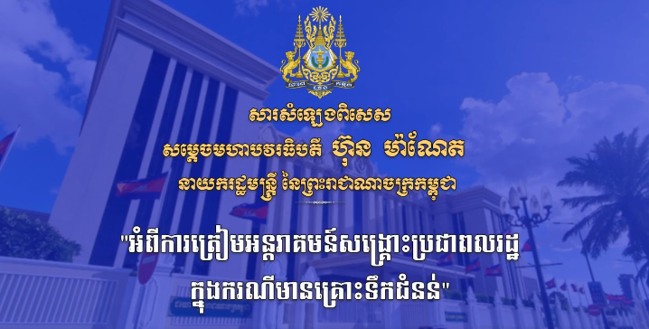ភ្នំពេញ៖ សារសំឡេង សម្ដេចមហាបវធិបតី ហ៊ុន ម៉ាណែត នាយករដ្ឋមន្ត្រី នៃព្រះរាជាណាចក្រកម្ពុជា «អំពីការត្រៀមអន្តរាគមន៍សង្រោះប្រជាពលរដ្ឋក្នុងករណីមានគ្រោះទឹកជំនន់» ថ្ងៃទី១៨ ខែកញ្ញា ឆ្នាំ២០២៤។