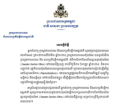 ក្រសួងការបរទេសកម្ពុជា ទាត់ចោលនូវរាល់ការប៉ុនប៉ងធ្វើការបកស្រាយករណីការបិទការិយាល័យ