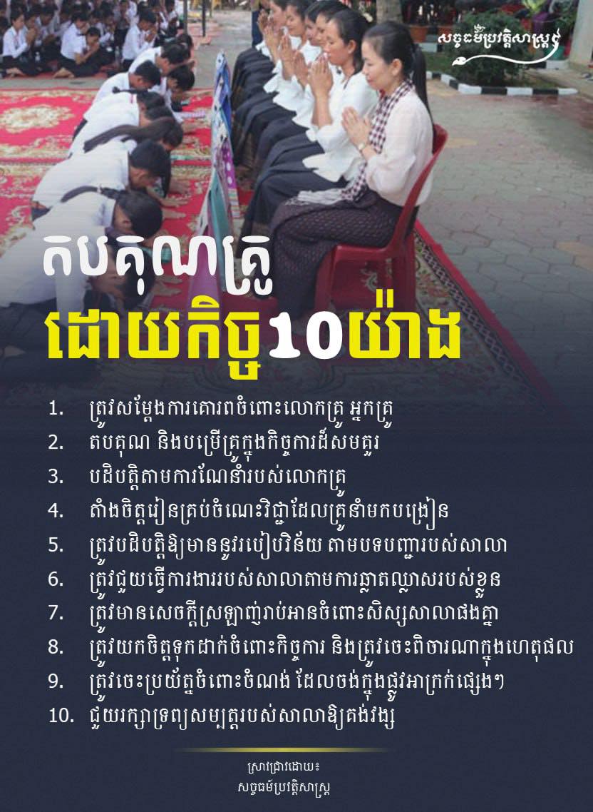 ទិវាគ្រូបង្រៀនពិភពលោក ( តបគុណគ្រូដោយកិច្ច១០យ៉ាង )