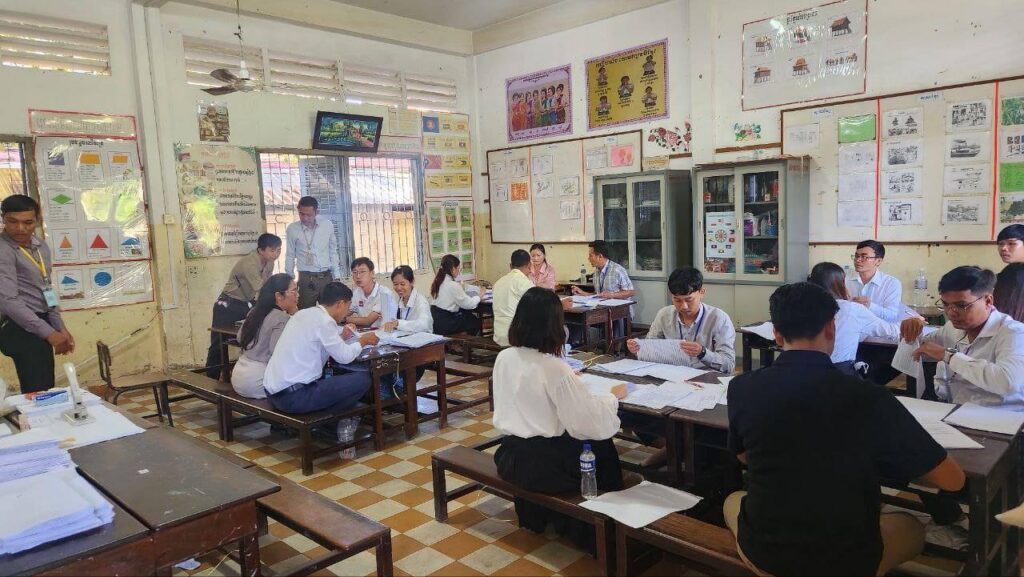 មន្រ្តីកំណែក្រសួងអប់រំ ចុះពិនិត្យផ្ទៀងផ្ទាត់ ចុះអក្សរសម្ងាត់ និងកាត់ក្បាលសន្លឹកកិច្ចការបេក្ខជនប្រឡងបាក់ឌុបក្នុងមណ្ឌលកំណែទាំង១០