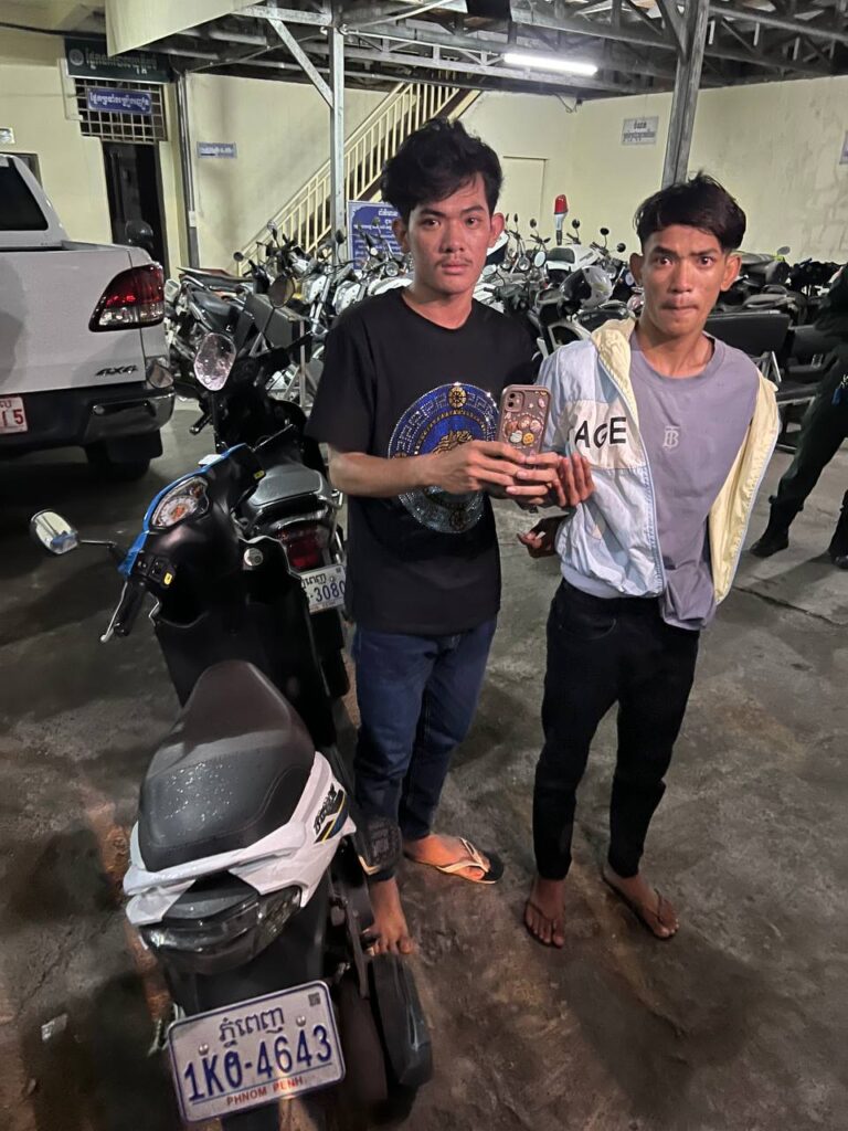 នគរបាលខណ្ឌឬស្សីកែវ ឃាត់ខ្លួនជនសង្ស័យ ២នាក់ ក្រោយឆក់ទូរស័ព្ទពីខណ្ឌទួលគោក