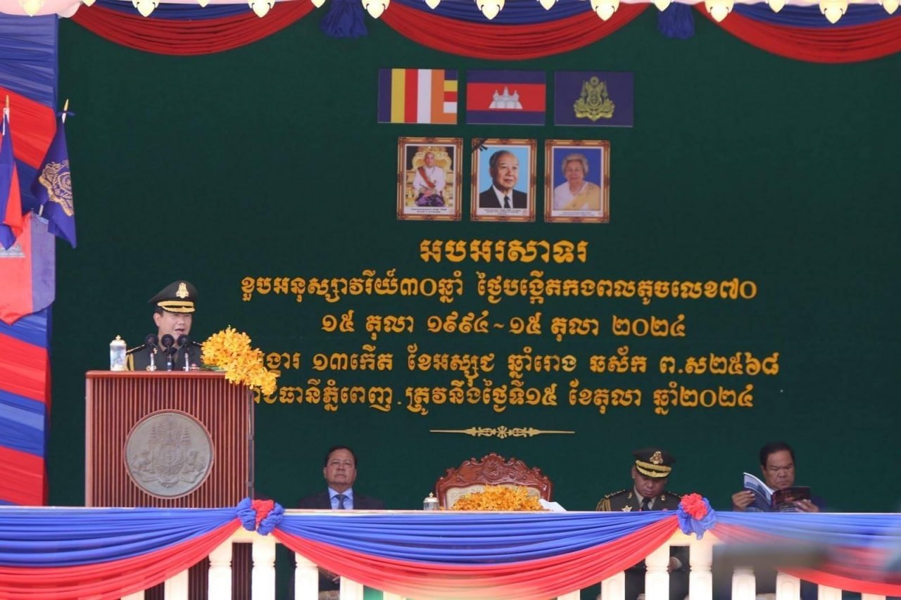 (ភ្នំពេញ)៖ សម្ដេចធិបតី បានថ្លែងណែនាំដល់រដ្ឋមន្ត្រីក្រសួងការពារជាតិ ឱ្យតាមដានជាប្រចាំ ចំពោះកងទ័ពមួកខៀវកម្ពុជា នៅក្រៅប្រទេស ជាពិសេស ប្រទេសកំពុងមានសង្រ្គាម ។ សម្ដេចមហាបវរធិបតី នាយឧត្តមសេនីយ៍ ហ៊ុន ម៉ាណែត នាយករដ្ឋមន្ត្រី នៃព្រះរាជាណាចក្រកម្ពុជា បានថ្លែងដូច្នេះ ក្នុងពិធីអបអរសាទរ ខួបអនុស្សាវរីយ៍៣០ឆ្នាំ ថ្ងៃបង្កើតកងពលតូចលេខ៧០ (១៥ តុលា ១៩៩៤ – ១៥ តុលា ឆ្នាំ ២០២៤) នាព្រឹកថ្ងៃទី១៥ ខែតុលា ឆ្នាំ២០២៤ ។
