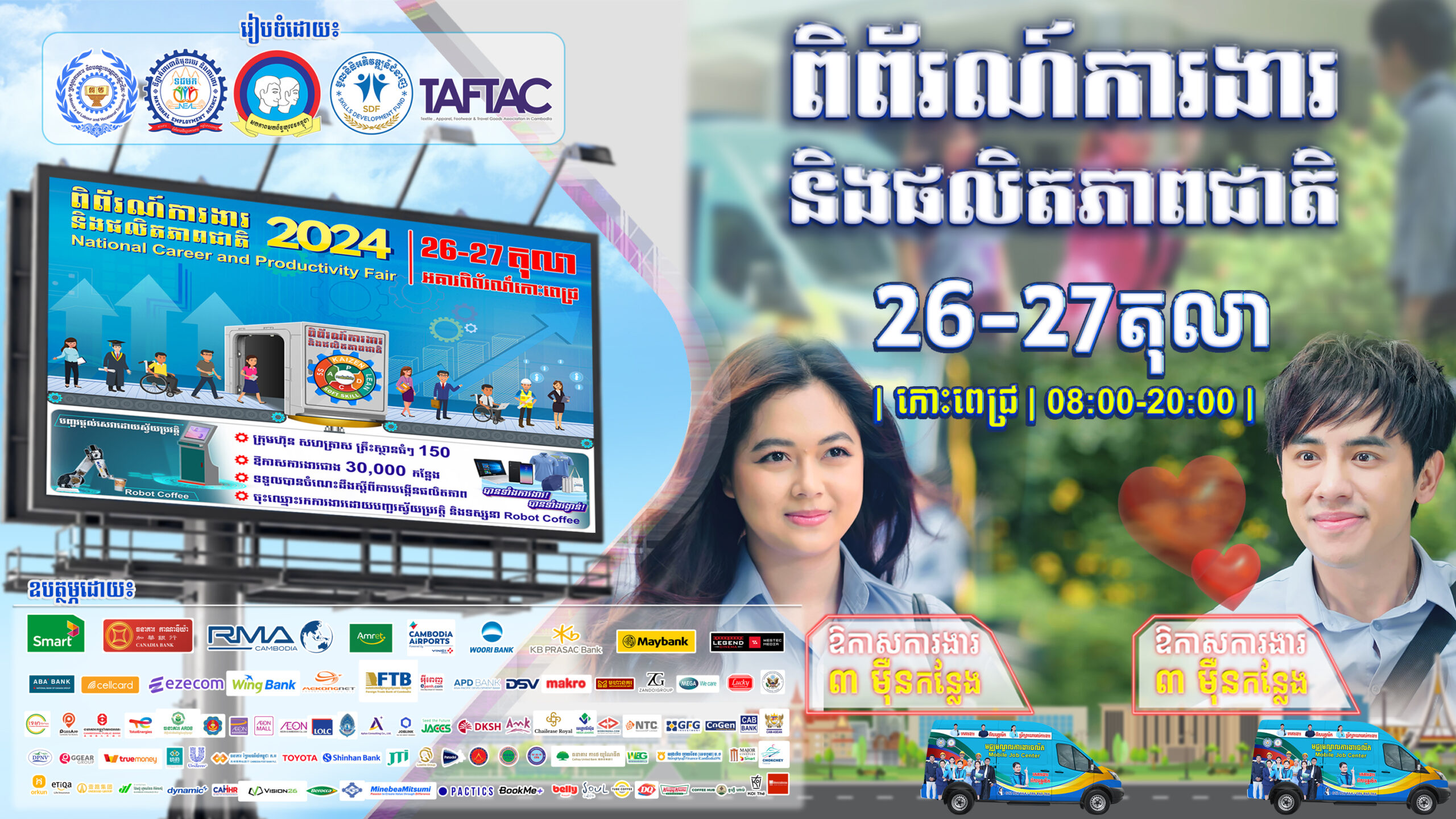 ថ្ងៃទី២៦ តុលាស្អែកនេះ ពិព័រណ៍ការងារ និងផលិតភាពជាតិឆ្នាំ២០២៤ នឹងចាប់ផ្តើមជាមួយឱកាសការងារសរុបជាង៣ម៉ឺនកន្លែង