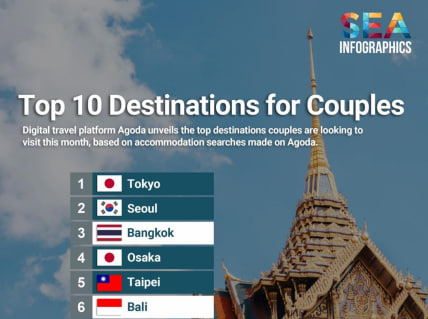 ក្នុងនោះរួមមាន ទីក្រុងតូក្យូ អូសាកា និងហ្វូកូអូកាជាដើម។ ក្រៅពីនេះ ក៏មានទីក្រុងផ្សេងៗទៀតក្នុងអាស៊ី ដូចជា បាងកក សេអ៊ូល បាលី និងហុងកុង ដែលទាក់ទាញអ្នកទេសចរណ៍ច្រើនសន្ធឹកដែរ – SEA Infographics