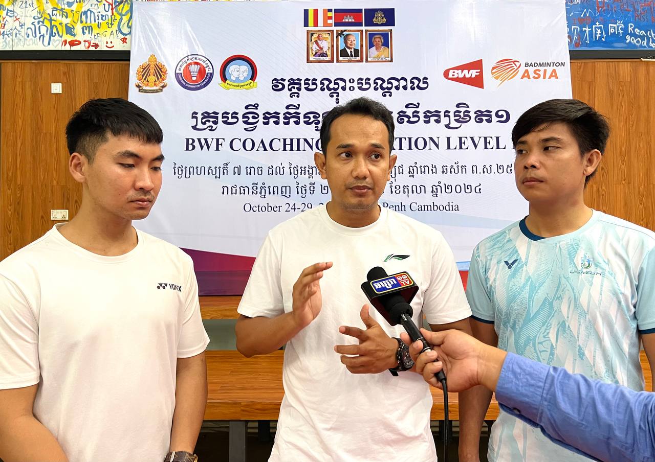 (ភ្នំពេញ)៖ លោក ព្រំ សារ៉ាវុធ ជំនួយការសហពន្ធកីឡាវាយសី ទទួលការងារបណ្តុះ បណ្តាល និងកិច្ចបរទេស បានគូសបញ្ជាក់ថា វគ្គបណ្តុះបណ្តាលគ្រូបង្ហាត់កីឡា វាយ សីកម្រិត១ ដែលរៀបចំដោយសហព័ន្ធកីឡាវាយសីកម្ពុជា ផ្តល់ដោយសហព័ន្ធកីឡាវាយសីពិភពលោក ដែលដំណើររយៈពេលរយៈ៦ថ្ងៃចាប់ពីថ្ងៃទី២៤ដល់ថ្ងៃទី២៩ ខែ តុលា ឆ្នាំ២០២៤ គឺជាវគ្គមួយផ្តល់ជូននូវចំណេះជំនាញដែលបង្ហាត់ដោយគ្រូឧទ្ទេសមកពីសហព័ន្ធកីឡាវាយសីអាស៊ី ដើម្បីជំរុញឱ្យគ្រូកីឡាវាយសីតាមបណ្តាក្លឹបមកពីរាជធានី -ខេត្ត ទទួលបាននូវគរុកោសល្យបង្ហាត់កីឡាករកីឡាការិនីវ័យក្មេងត្រឹមត្រូវតាមបច្ចេកទេសស្តង់ដាររបស់សហព័ន្ធកីឡាវាយសីពិភពលោក ។