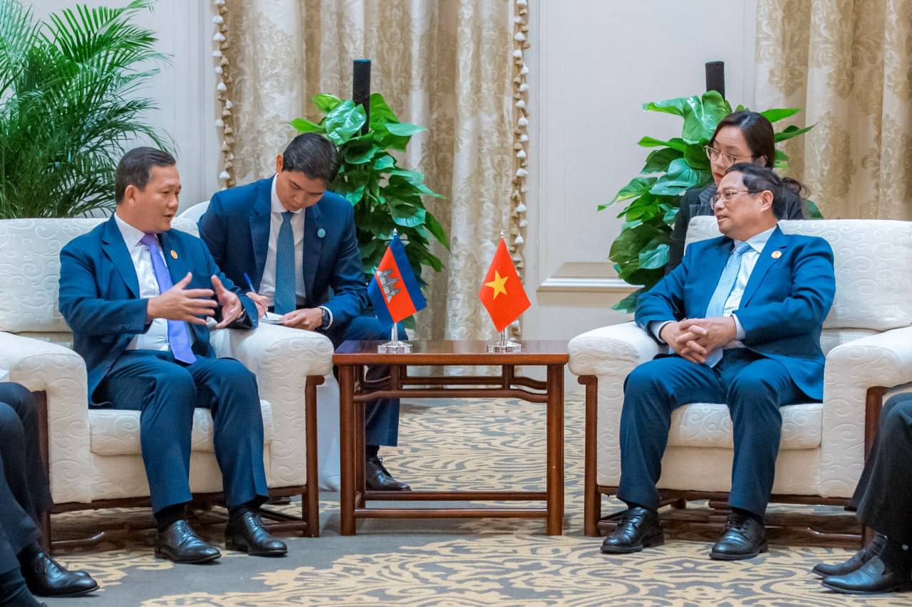 (ចិន)៖ ក្នុងជំនួបពិភាក្សាការងារជាមួយសម្តេចមហាបវរធិបតី ហ៊ុន ម៉ាណែត នាយករដ្ឋមន្រ្តី នៃព្រះរាជាណាចក្រកម្ពុជា នាល្ងាច ថ្ងៃទី៦ ខែវិច្ឆិកា ឆ្នាំ២០២៤ ក្នុងឱកាសអញ្ជើញចូលរួម កិច្ចប្រជុំកំពូលមហាអនុតំបន់មេគង្គ (GMS) លើកទី៨ នៅថ្ងៃទី៦-៧ ខែវិច្ឆិកា ឆ្នាំ២០២៤ នៅទីក្រុងគុនមិញ ខេត្តយូណាន សាធារណរដ្ឋប្រជាមានិតចិន ឯកឧត្ដម ផាម មិញជីញ (Pham Minh Chinh) នាយករដ្ឋមន្ត្រី នៃសាធារណរដ្ឋសង្គមនិយមវៀតណាម បានកោតសរសើរវឌ្ឍនភាព និងការរីកចម្រើនរបស់កម្ពុជា ។