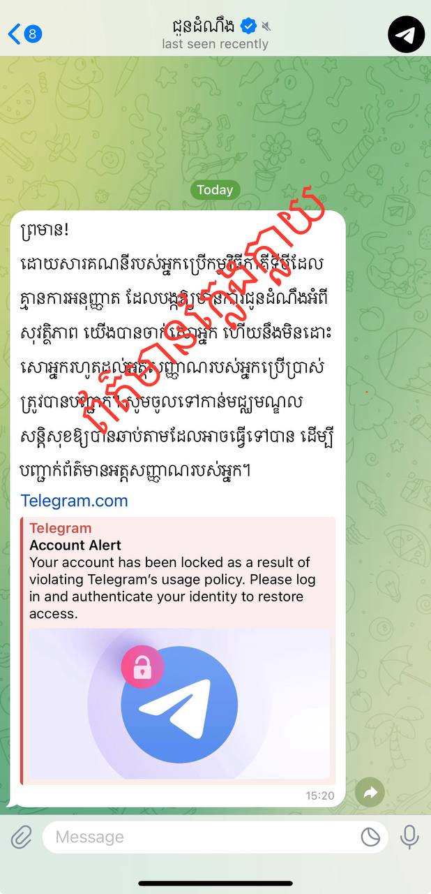 ប្រសិនបើទទួលបានសារតេឡេក្រាមដូចរូបភាពនេះ សូមជៀសវាងចុចលើតំណភ្ជាប់ ព្រមទាំងលប់សារចោល ៕