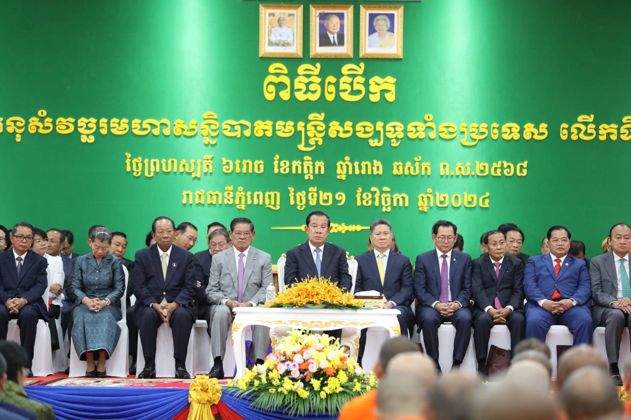 (ភ្នំពេញ)៖ សម្ដេចអគ្គមហាសេនាបតីតេជោ ហ៊ុន សែន ប្រធានព្រឹទ្ធសភានៃព្រះរាជាណាចក្រកម្ពុជា ព្រះរាជតំណាងដ៏ខ្ពង់ខ្ពស់បំផុតរបស់ ព្រះករុណា ព្រះបាទសម្ដេចព្រះបរមនាថ នរោត្តម សីហមុនី ព្រះមហាក្សត្រនៃព្រះរាជាណាចក្រកម្ពុជា ជាទីគោរពសក្ការៈដ៏ខ្ពង់ខ្ពស់បំផុត អញ្ជើញជាអធិបតី ពិធីបើកអនុសំវច្ឆរមហាសន្និបាតមន្ត្រីសង្ឃទូទាំងបរទេស លើកទី៣២ នៅវិទ្យាស្ថានគរុកោសល្យ និងវិក្រឹត្យការ រាជធានីភ្នំពេញ នាព្រឹកថ្ងៃទី២១ ខែវិច្ឆិកា ឆ្នាំ២០២៤ នៅវិទ្យាស្ថានជាតិអប់រំ ។