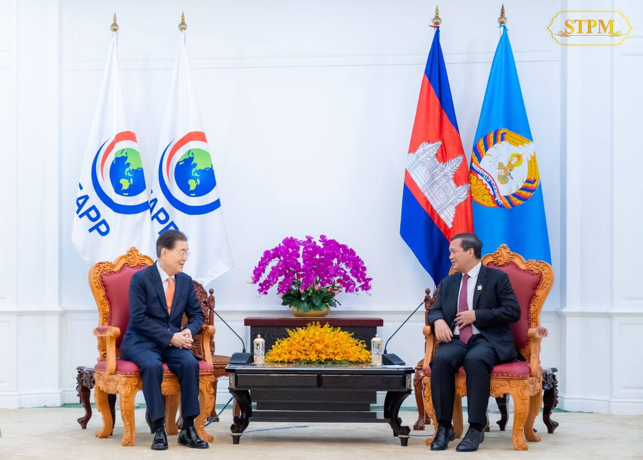 នាព្រឹកថ្ងៃទី២២ ខែវិច្ឆិកា ឆ្នាំ២០២៤ សម្តេចមហាបវរធិបតី ហ៊ុន ម៉ាណែត នាយករដ្ឋមន្ត្រី នៃព្រះរាជាណាចក្រកម្ពុជា បានអនុញ្ញាតឱ្យឯកឧត្ដម Chung Eui-Yong ប្រធានគណៈកម្មាធិការអចិន្ត្រៃយ៍ និងសមាជិកគណៈប្រតិភូនៃសន្និសីទអន្តរជាតិនៃបណ្តាគណបក្សនយោបាយនៅអាស៊ី (ICAPP) ចូលជួបសម្ដែងការគួរសម និងពិភាក្សាការងារ ក្នុងឱកាសចូលរួមមហាសន្និបាត ICAPP លើកទី១២ និងកិច្ចប្រជុំពាក់ព័ន្ធ នៅវិមាន៧មករា។