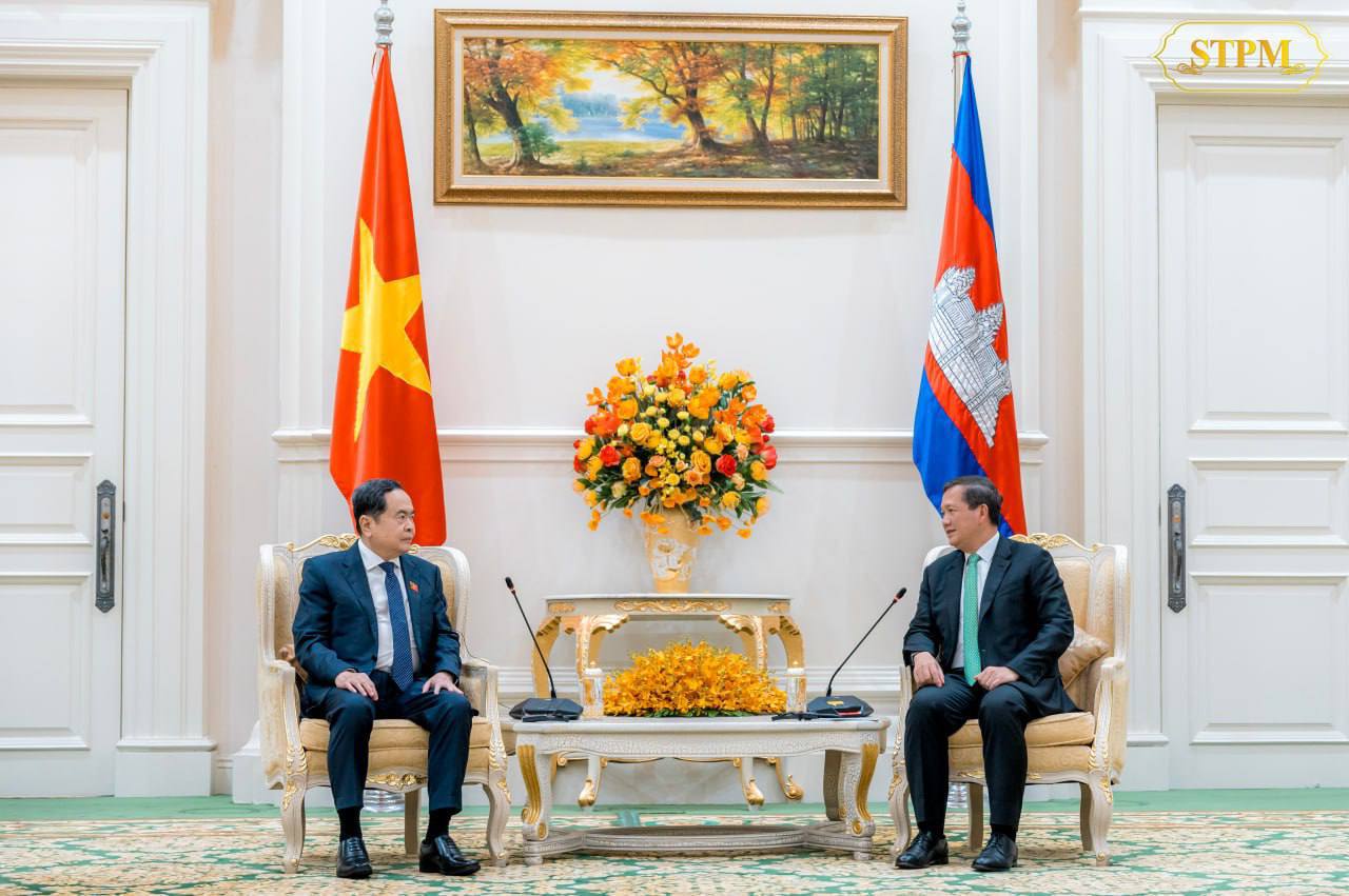 ភ្នំពេញ៖កម្ពុជា-វៀតណាម ប្តេជ្ញាបន្តជំរុញការពង្រឹង និងពង្រីកទំនាក់ទំនង និងកិច្ចសហប្រតិបត្តិការទ្វេភាគីលើគ្រប់វិស័យ ឱ្យកាន់តែរីកចម្រើន និងរឹងមាំបន្ថែមទៀត ។ នេះបើតាមលទ្ធផលនៃជំនួបពិភាក្សាការងាររវាងសម្តេចមហាបវរធិបតី ហ៊ុន ម៉ាណែត នាយករដ្ឋមន្ត្រី នៃព្រះរាជាណាចក្រកម្ពុជា ជាមួយ ឯកឧត្ដម ជិន ថាញ់មិន (Tran Thanh Man)ប្រធានរដ្ឋសភា នៃសាធារណរដ្ឋសង្គមនិយមវៀតណាមនារសៀលថ្ងៃទី២២ ខែវិច្ឆិកា ឆ្នាំ២០២៤ ក្នុងឱកាសនៃដំណើរទស្សនកិច្ចផ្លូវការ និងចូលរួមមហាសន្និបាត ICAPP លើកទី១២ និងកិច្ចប្រជុំពាក់ព័ន្ធនៅកម្ពុជា ។