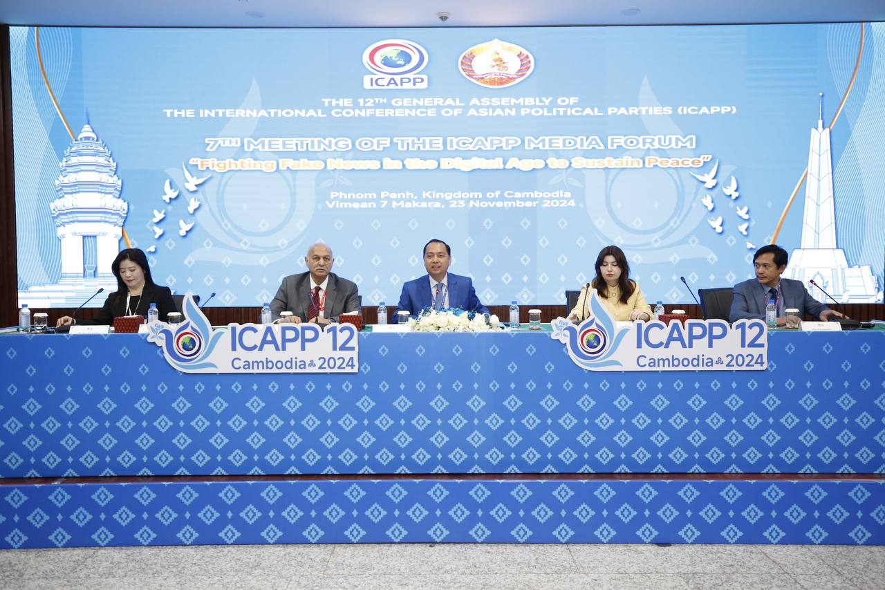 សូមជម្រាបថា ក្នុងកិច្ចប្រជុំគណៈកម្មាធិការអចិន្ត្រៃយ៍ លើកទី៤២ នៃបណ្តាគណបក្សនយោបាយនៅអាស៊ី (ICAPP) លើកទី១២ ដែលបានប្រព្រឹត្តទៅនៅសណ្ឋាគារ ហៃយ៉ាត់ រីជិនស៊ី ភ្នំពេញ នាយប់ថ្ងៃទី២១ ខែវិច្ឆិកា ឆ្នាំ២០២៤ សម្ដេចអគ្គមហាសេនាបតីតេជោ ហ៊ុន សែន ប្រធានគណបក្សប្រជាជនកម្ពុជា និងជាប្រធានកិត្តិយសមហាសន្និបាត ICAPP លើកទី១២ បានបានគូសរំលេចថា ក្នុងនាមជាគណបក្សដឹកនាំមួយ នៅក្នុងអង្គការ ICAPP គណបក្សប្រជាជនកម្ពុជា បានយកចិត្តទុកដាក់ខ្ពស់ចំពោះសេរីភាពសារព័ត៌មាន ប្រកបដោយវិជ្ជាជីវៈ ដោយបានដាក់បញ្ចូលកិច្ចប្រជុំ វេទិកាសារព័ត៌មាន ICAPP លើកទី៧ ក្រោមប្រធានបទ «ការប្រឆាំងព័ត៌មានក្លែងក្លាយក្នុងបរិបទឌីជីថលដើម្បីថែរក្សាសន្តិភាព» ដើម្បីលើកកម្ពស់ការយល់ដឹង អំពីការប្រើប្រាស់ប្រព័ន្ធព័ត៌មានឌីជីថល ក្នុងការតភ្ជាប់ កិច្ចសហប្រតិបត្តិការរវាងគណបក្សនយោបាយ និងប្រយុទ្ធប្រឆាំងនឹងព័ត៌មានក្លែងក្លាយ ដែលជាក្តីកង្វល់រួមមួយ របស់ពិភពលោកបច្ចុប្បន្ន ។