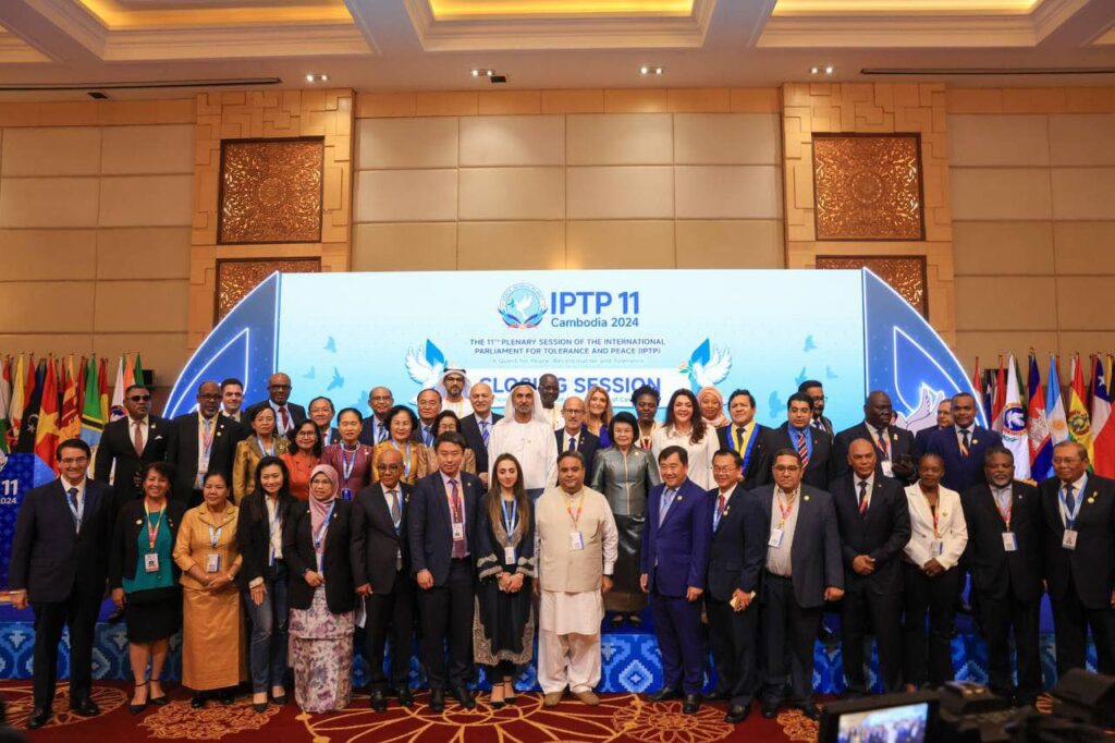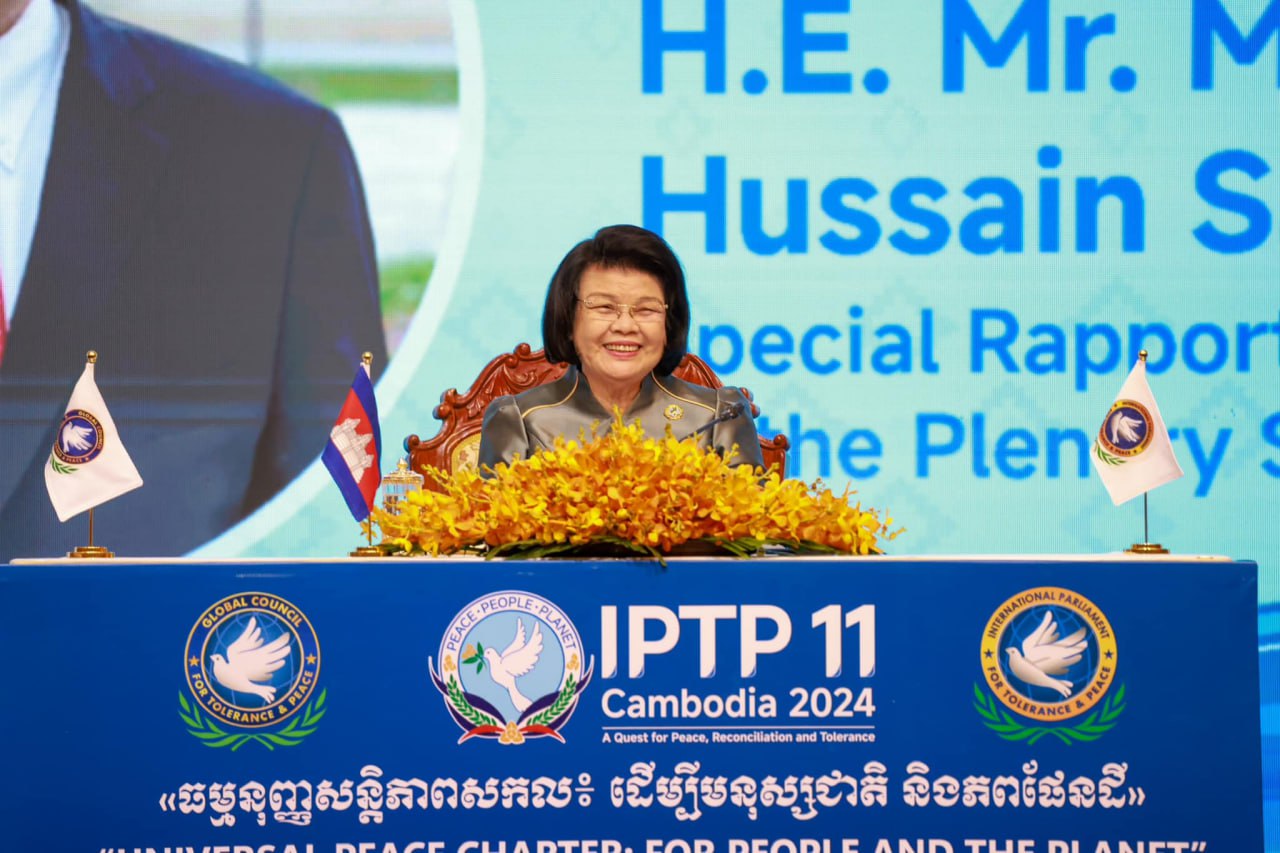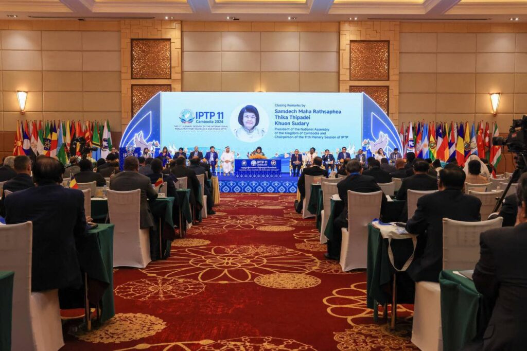 (ភ្នំពេញ)៖ ក្រោយពីដំណើរកិច្ចប្រជុំរយៈពេលពីរថ្ងៃមក សម័យប្រជុំពេញអង្គសភាអន្តរជាតិដើម្បីភាពអត់ឱននិងសន្តិភាព (IPTP) លើកទី១១ ដែលសភាកម្ពុជាធ្វើជាម្ចាស់ផ្ទះ នៅសណ្ឋាគារសុខាភ្នំពេញនោះ បានឈានដល់ការបិទបញ្ចប់ នៅព្រឹកថ្ងៃទី២៥ ខែវិច្ឆិកា ឆ្នាំ២០២៤នេះ ប្រកបដោយជោគជ័យនាំមកនូវផ្លែផ្កាជាទីមោទនៈ ក្នុងកិច្ចការពារសន្តិភាពនិងការលើកកម្ពស់វប្បធម៌សន្ទនាតាមរយៈការពង្រឹងតួនាទីរបស់សភា ដើម្បីសន្តិភាពនិងវិបុលភាព របស់ប្រជាពលរដ្ឋ។