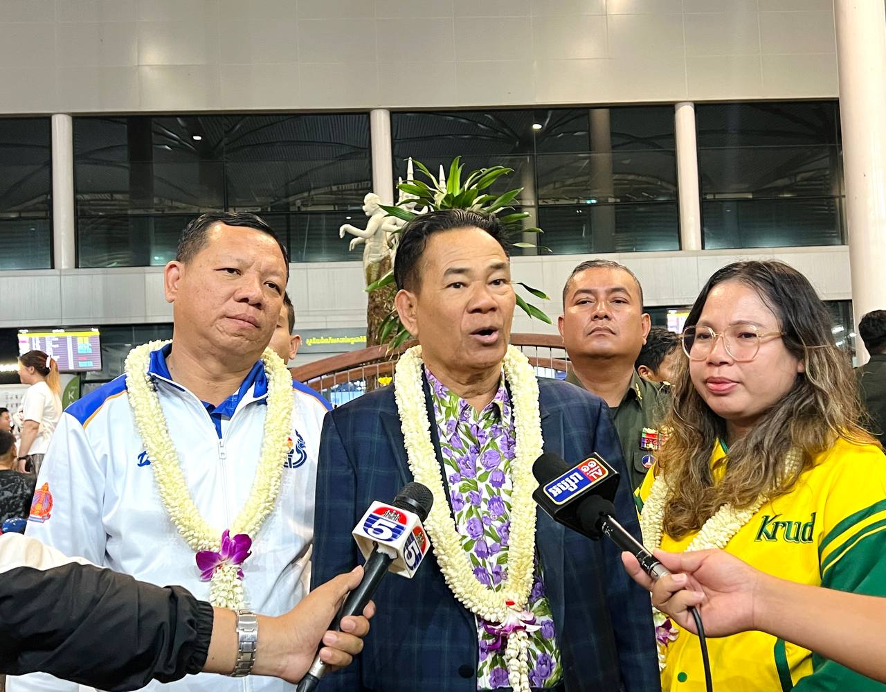 ភ្នំពេញ ៖ ថ្នាក់ដឹកនាំ ប្រតិភូ កីឡាករកីឡាការិនីប្រដាល់គុនខ្មែរ ដឹកនាំ ដោយ ឯកឧត្តម តែម ម៉ឺន អនុរដ្ឋលេខាធិការក្រសួងការពារជាតិ និងជាប្រធានកិត្តិយសសហព័ន្ធកីឡាប្រដាល់គុនខ្មែរ បានធ្វើមាតុភូមិនិវត្តមកដល់កម្ពុជា នាយប់ថ្ងៃទី២៧ ខែវិច្ឆិកា ឆ្នាំ២០២៤ ។