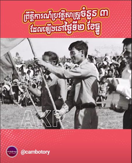 “វីដេអូ៖ ព្រឹត្តិការណ៍ប្រវត្តិសាស្រ្ដចំនួន ៣ ដែលកើតឡើងនៅថ្ងៃទី២ ធ្នូ”60វិនាទីនៃប្រវត្តិសាស្ត្រសច្ចធម៌ប្រវត្តិសាស្ត្រអត្ថបទដោយ៖លី ប៊ុនហេង - Ly Bunheng #សច្ចធម៌ប្រវត្ដិសាស្រ្ដ #ព្រះរាជាណាចក្រកម្ពុជា #ប្រវត្តិសាស្រ្ត #រណសិរ្ស #រណសិរ្សសាមគ្គីសង្រ្គោះជាតិកម្ពុជា #រណសិរស្សសាមគ្គីអភិវឌ្ឍន៍មាតុភូមិកម្ពុជា #២ធ្នូ Facebook Page: សច្ចធម៌ប្រវត្ដិសាស្រ្ដTo all social media លី ប៊ុនហេង - Ly Bunhengលី ប៊ុនហេង ប្រធានផ្នែកផ្សព្វផ្សាយ នៃសច្ចធម៌ប្រវត្តិសាស្រ្ដអត្ថបទមុនអត្ថបទបន្ទាប់