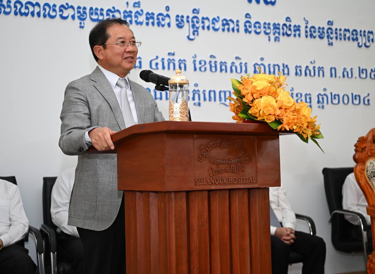 (ភ្នំពេញ)៖ នាព្រឹកថ្ងៃទី៤ ខែធ្នូ ឆ្នាំ២០២៤ ឯកឧត្តមសាស្រ្តាចារ្យ ឈាង រ៉ា រដ្ឋមន្រ្តីក្រសួងសុខាភិបាល និងថ្នាក់ដឹកក្រសួងសុខាភិបាល បានអញ្ជើញចុះពិនិត្យការបម្រើសេវាសុខាភិបាល និងសួរសុខទុក្ខ ថ្នាក់ដឹកនាំ មន្រ្តីរាជការ បុគ្គលិកនៃមន្ទីរពេទ្យព្រះសីហនុ មណ្ឌលនៃក្តីសង្ឃឹម ។