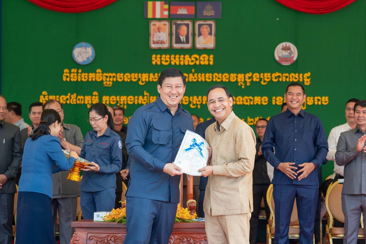 ថែ្លងនៅក្នុងពិធីចែកវិញ្ញាបនបត្រសម្គាល់ម្ចាស់អចលនវត្ថុ ជូនប្រជាពលរដ្ឋចំនួន ៥៣ភូមិ ក្នុងភូមិសាស្រ្តក្រុងសៀមរាប និងស្រុកប្រាសាទបាគង ខេត្តសៀមរាប។