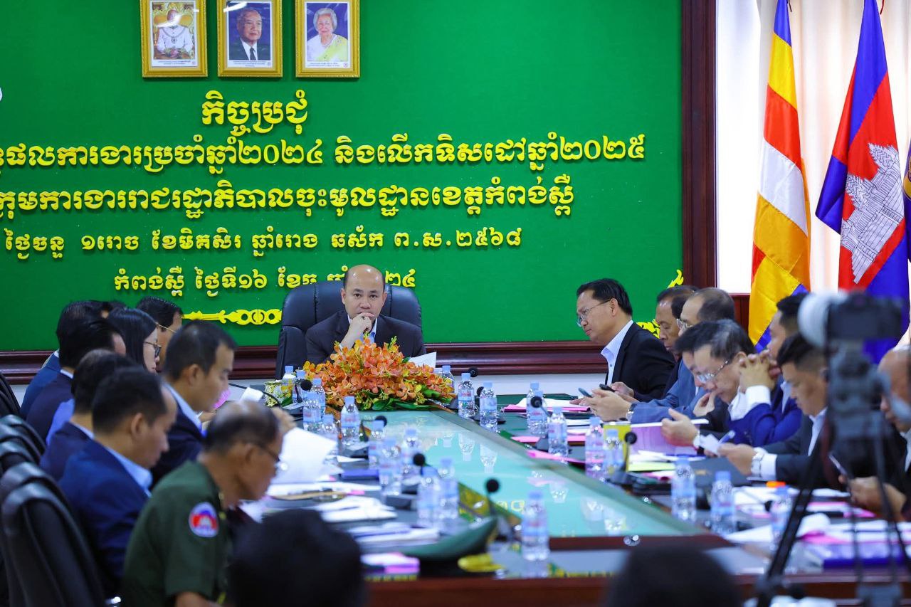 (ខេត្តកំពង់ស្ពឺ)៖ នៅក្នុងកិច្ចប្រជុំបូកសរុបលទ្ធផលការងារប្រចាំឆ្នាំ២០២៤ និងលើកទិសដៅឆ្នាំ២០២៥ របស់ក្រុមការងាររាជរដ្ឋាភិបាលចុះជួយមូលដ្ឋានខេត្តកំពង់ស្ពឺ នៅសាលាខេត្តកំពង់ស្ពឺ នារសៀលថ្ងៃទី១៦ ខែធ្នូ ឆ្នាំ២០២៤ ឯកឧត្ដមឧបនាយករដ្ឋមន្ត្រី ហ៊ុន ម៉ានី រដ្ឋមន្ត្រីក្រសួងមុខងារសាធារណៈ និងជាប្រធានក្រុមការងាររាជរដ្ឋាភិបាលចុះមូលដ្ឋានខេត្តកំពង់ស្ពឺ បានណែនាំដល់ក្រុមការងាររាជរដ្ឋាភិបាលចុះមូលដ្ឋានក្រុង ស្រុកថា ក្នុងករណីដែលមានការងារបន្ទាន់ ដើម្បីដោះស្រាយជូនប្រជាពលរដ្ឋ ចេញពីវេទិការសាធារណៈ ក្រុមការងារអាចទាក់ទងមកកាន់ ឯកឧត្តម ដោយផ្ទាល់ ភ្លាមៗដោយកុំចាំបាច់រង់ចាំ ទាល់តែមានការរៀបចំកិច្ចប្រជុំ ។