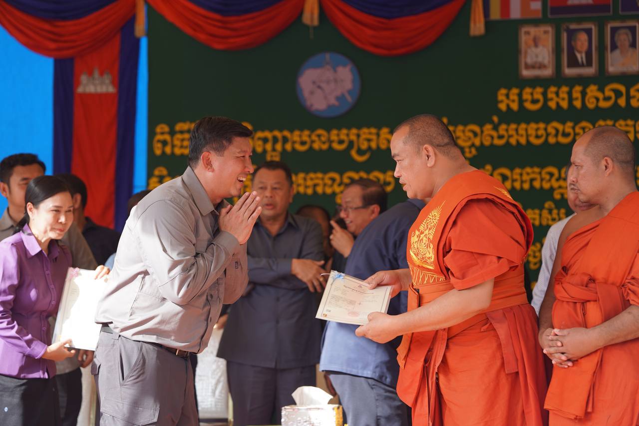 វិញ្ញាបនបត្រសម្គាល់ម្ចាស់អចលនវត្ថុចំនួន ១០ ១៥៨បណ្ណ ត្រូវបានរាជរដ្ឋាភិបាលប្រគល់ជូនប្រជាពលរដ្ឋដែលរស់នៅក្នុងក្រុងប៉ោយប៉ែត ខេត្តបន្ទាយមានជ័យ។One-Minuteព័ត៌មានជាតិអត្ថបទដោយ៖ឆាយ រត្ថា ៩ ធ្នូ ២០២៤ 📷 MLMUPC #ams1minute ឆាយ រត្ថាលោក ឆាយ រត្ថា ជាបុគ្គលិកផ្នែកព័ត៌មានវិទ្យា នៃអគ្គនាយកដ្ឋានវិទ្យុ និងទូរទស្សន៍ អប្សរាអត្ថបទមុនអត្ថបទបន្ទាប់