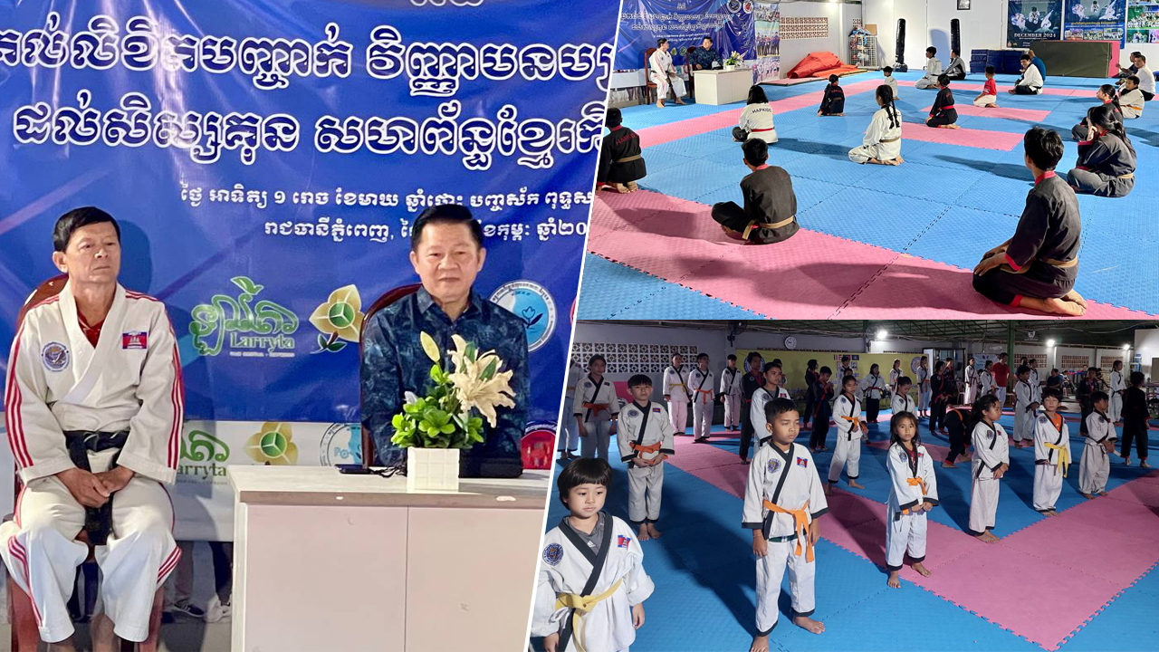 (ភ្នំពេញ)៖ លោក គួច ហុងជៀក ប្រធានស្តីទី សហព័ន្ធខ្មែរកីឡា ហាប់គីដូបានសំណេះសំណាលលើកទឹកចិត្ត និងលើកសរសើរ ជូនដល់កីឡាករ កីឡាការិនី ហាប់គីដូ ទាំងអស់ ដែលបានខិតខំហ្វឹកហាត់បង្កើនគុណភាពបច្ចេកទេសរបស់ខ្លួន ត្រៀមចូលរួមប្រកួតកីឡាហាប់គីដូ ជ្រើសរើសជើងឯកថ្នាក់ជាតិ លើកទី២ ដែលគ្រោងនឹងធ្វើឡើងពីពីថ្ងៃទី២១-២២ ខែធ្នូ ឆ្នាំ២០២៤ នៅពហុកីឡដ្ឋានជាតិអូឡាំពិក។