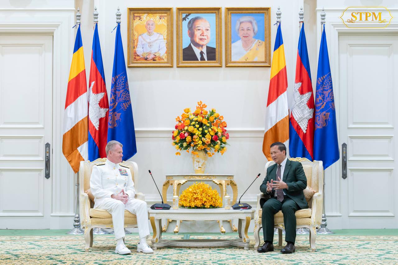 (ភ្នំពេញ)៖ សម្ដេចមហាបវរធិបតី ហ៊ុន ម៉ាណែត នាយករដ្ឋមន្ត្រី កម្ពុជា បានអនុញ្ញាតឱ្យ នាយឧត្តមនាវី Samuel J. Paparo មេបញ្ជាការនៃបញ្ជាការដ្ឋានឥណ្ឌូប៉ាស៊ីហ្វិក នៃសហរដ្ឋអាមេរិក ចូលជួបសម្តែងការគួរសម និងពិភាក្សាការងារ នៅវិមានសន្តិភាព នារសៀលថ្ងៃទី១៨ ខែធ្នូ ឆ្នាំ២០២៤ ។