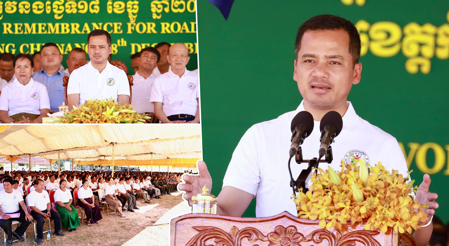 (ខេត្តកំពង់ឆ្នាំង)៖ ក្នុងទិវាអន្តរជាតិរំលឹកដល់ជនរងគ្រោះដោយគ្រោះថ្នាក់ចរាចរណ៍ផ្លូវគោក លើកទី១៩ ប្រារពនៅទីរួមខេត្តកំពង់ឆ្នាំង នារសៀលថ្ងៃទី១៨ ខែធ្នូ ឆ្នាំ២០២៤ ឯកឧត្តមអភិសន្តិបណ្ឌិត ស សុខា ឧបនាយករដ្ឋមន្ត្រី រដ្ឋមន្ត្រីក្រសួងមហាផ្ទៃ និងជាប្រធានគណៈកម្មាធិការជាតិសុវត្ថិភាពចរាចរណ៍ផ្លូវគោក បានគូសបញ្ជាក់ថា ក្នុងរយៈពេល១១ខែ ឆ្នាំ២០២៤នេះ ករណីគ្រោះថ្នាក់ចរាចរណ៍ ត្រូវបានកាត់បន្ថយ ចំនួន ៣៥៤លើក ស្មើនឹង ១២% និងកាត់បន្ថយចំនួនអ្នកស្លាប់ ២៧នាក់ ស្មើនឹង ២% កាត់បន្ថយចំនួនអ្នករបួស បានចំនួន ៥៨០នាក់ ស្មើនិង ១៤% ។