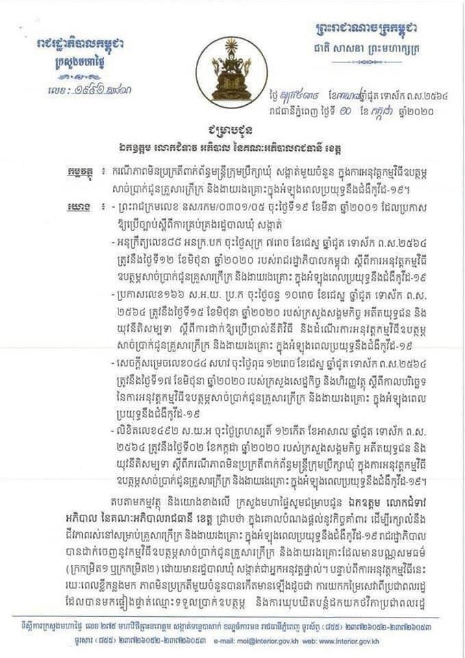 សម្ដេច ស ខេង ៖ អភិបាល រាជធានី -ខេត្ត ត្រូវចាត់វិធានការ ម៉ឺងម៉ាត់ចំពោះមន្ត្រីឃុំ-សង្កាត់ណា អនុវត្តន៍មិនប្រក្រតី ក្នុងកម្មវិធី ឧបត្ថម្ភសាច់ប្រាក់ព័ត៌មានអត្ថបទដោយ៖Kien Sereyvuth Kien SereyvuthIT Technical Supportអត្ថបទមុនអត្ថបទបន្ទាប់