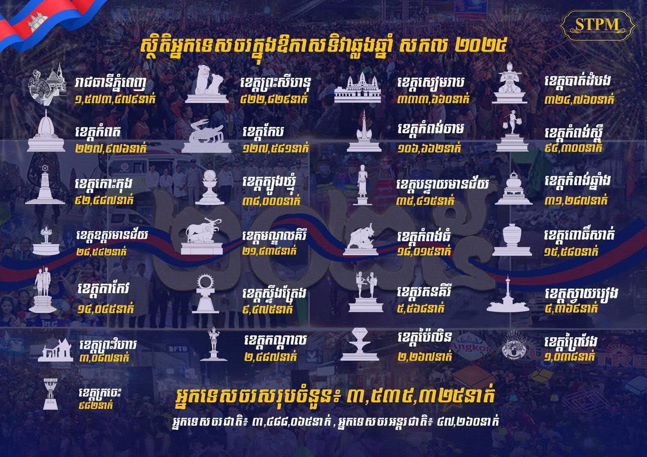- ទេសចរជាតិ សរុប៖ ៣ ៤៨៨ ០៦៥ នាក់