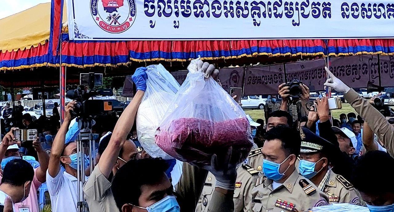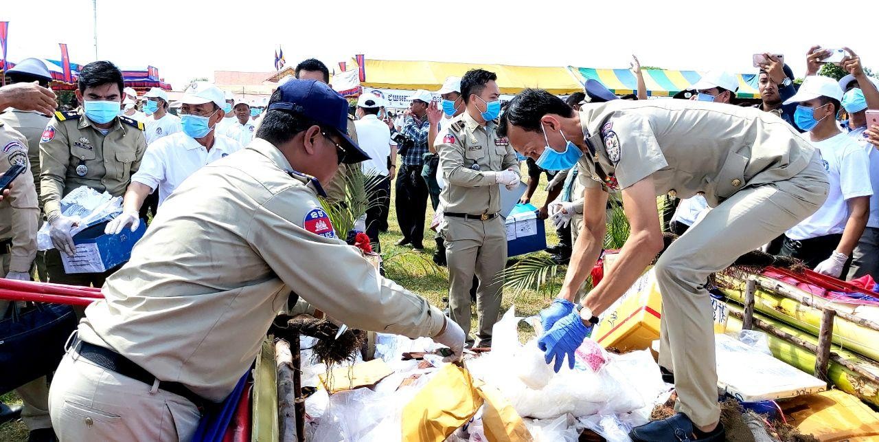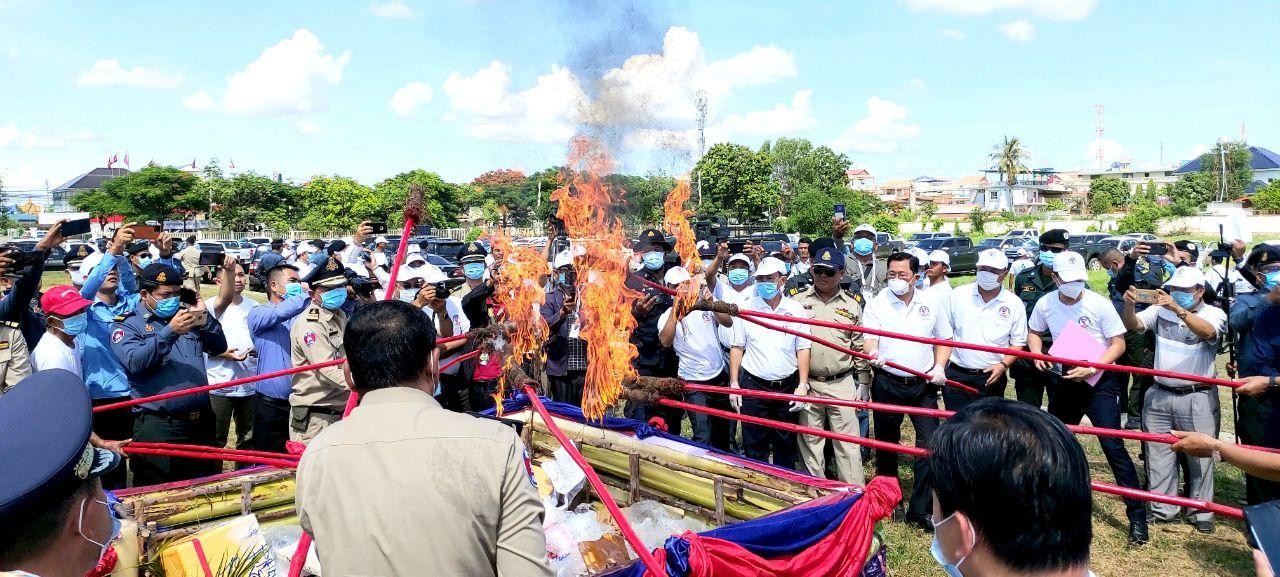 សារធាតុគ្រឿងញៀនជាង២៣គីឡូក្រាមដែលត្រូវដកហូតនិងបង្ក្រាបបានពីខេត្តចំនួន៤ ត្រូវបាននាំយកមកដុតបំផ្លាញចោល នៅខេត្តបាត់ដំបង