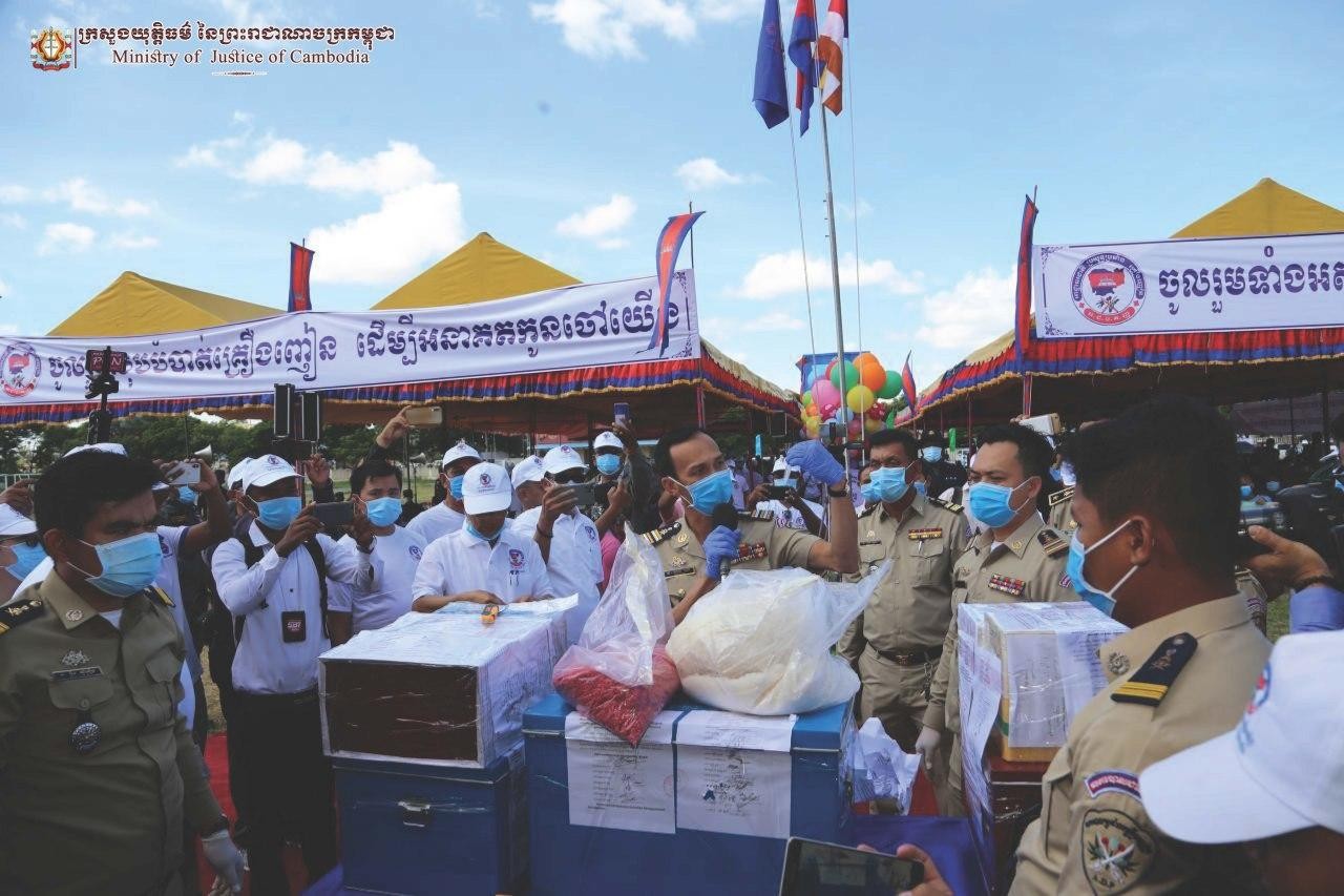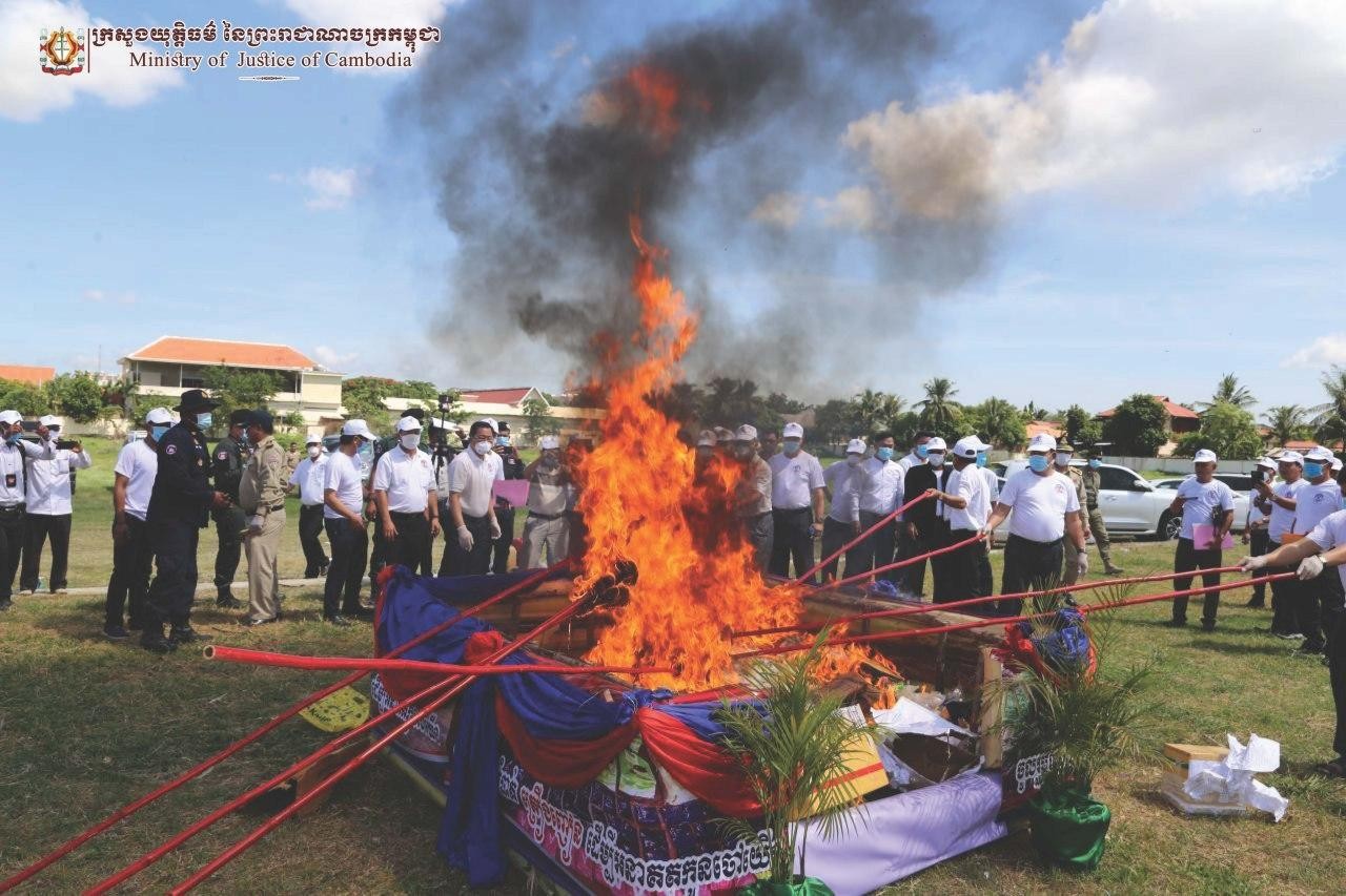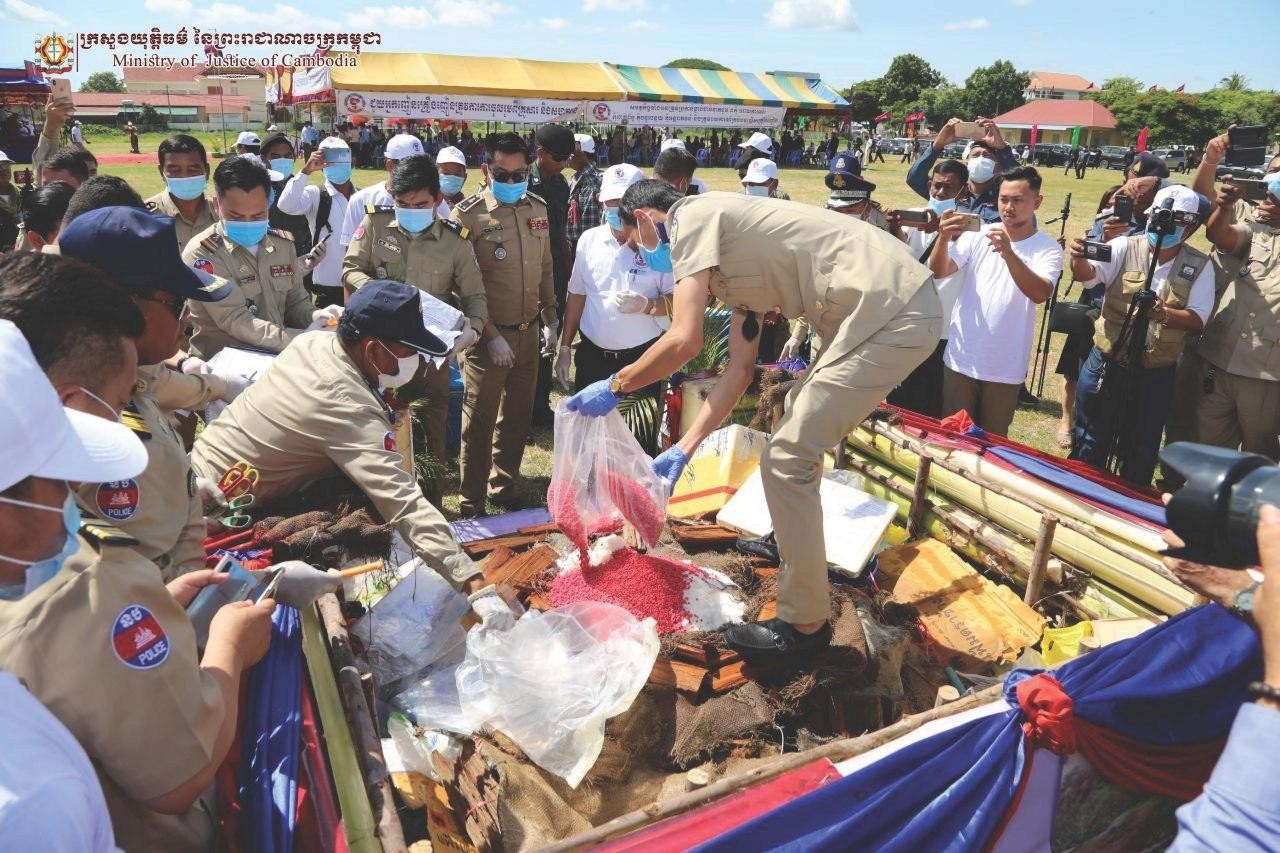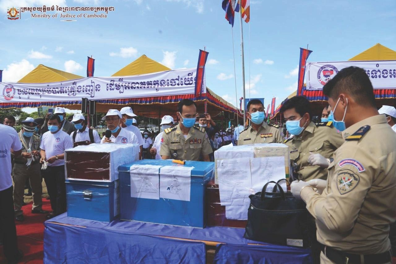ក្រសួងយុត្តិធម៌ កំទេចគ្រឿងញៀននៅខេត្តបាត់ដំបង ប្រមាណ២០គីឡូក្រាម និងថ្នាំមេតំហ្វេតាមីន (WY) ជាង៦ម៉ឺនគ្រាប់