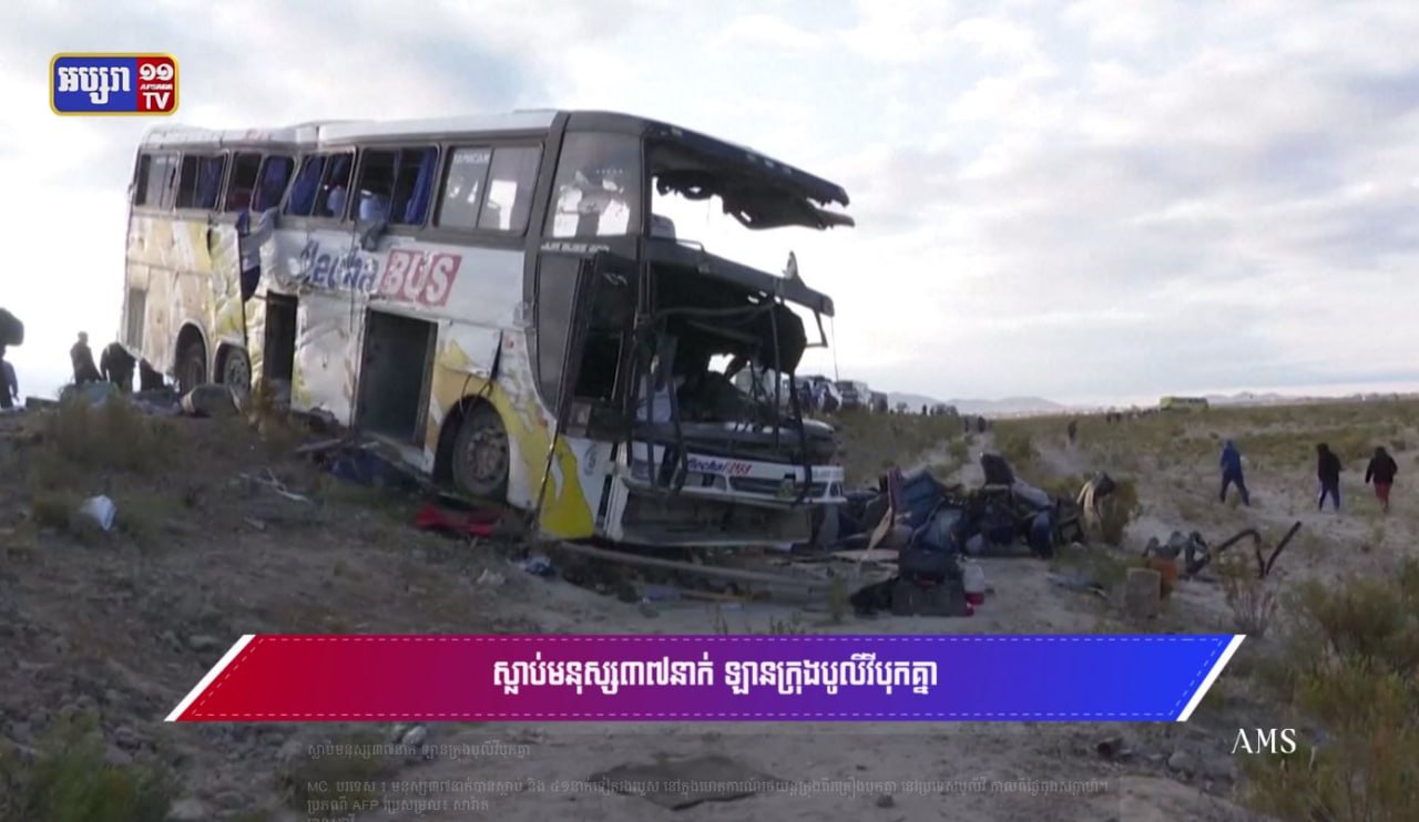 បរទេស ៖ មនុស្ស៣៧នាក់បានស្លាប់ និង ៤១នាក់ទៀតរងរបួស នៅក្នុងហេតុការណ៍រថយន្តក្រុងពីរគ្រឿងបុកគ្នា នៅប្រទេសបូលីវី កាលពីថ្ងៃចុងសប្តាហ៍។