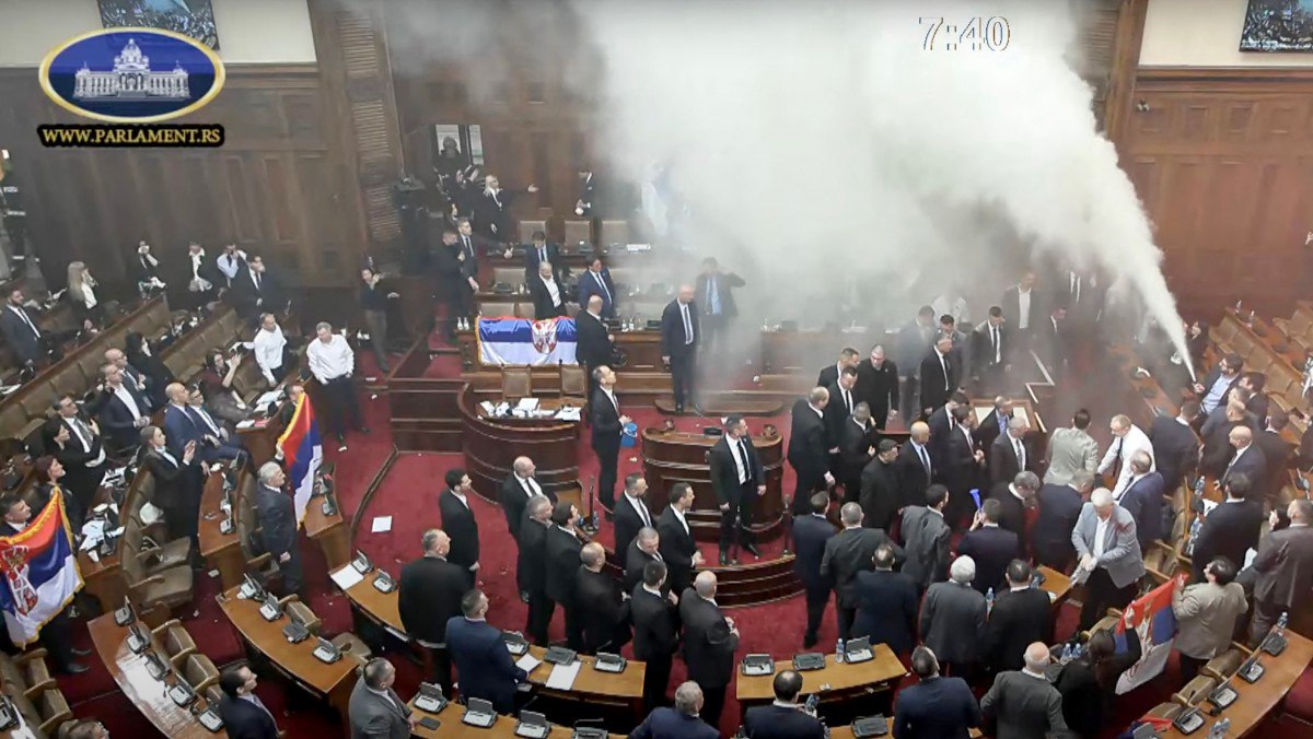 ក្រុមប្រឆាំងស៊ែប៊ីបាញ់ឧស្ម័នបង្ហូរទឹកភ្នែកក្នុងសភា