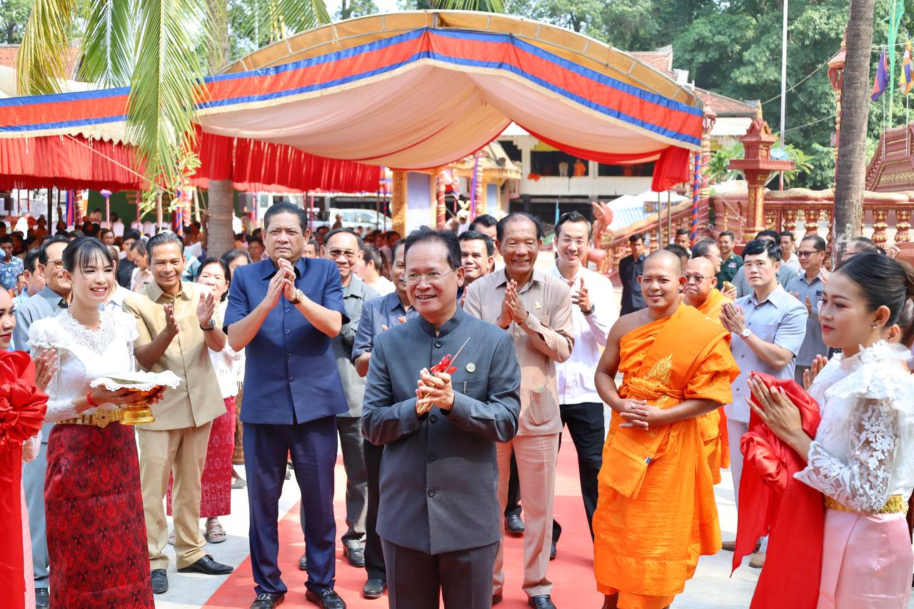 (ភ្នំពេញ)៖ ឯកឧត្តម បណ្ឌិត អ៊ាង សុផល្លែត រដ្ឋមន្ត្រីក្រសួងបរិស្ថាន និងជាប្រធានក្រុមការងារ រាជរដ្ឋាភិបាលចុះមូលដ្ឋានខេត្តត្បូងឃ្មុំ នៅថ្ងៃទី២៩ ខែមីនា ឆ្នាំ២០២៥ បានអញ្ជើញជាធិបតីភាពក្នុងបុណ្យសម្ពោធឆ្លងកុដ្ឋ ពុទ្ធាភិសេក ឆ្លងខ្លោងទ្វារ ផ្លូវបេតុង វច្ចកុដ្ឋ និងសមិទ្ធផលនានា នៅវត្តខទិរារាម (ហៅវត្តគគីរ) ស្ថិតនៅភូមិទី២ ឃុំព្រែកអាជី ស្រុកក្រូចឆ្មារ ខេត្តត្បូងឃ្មុំ។