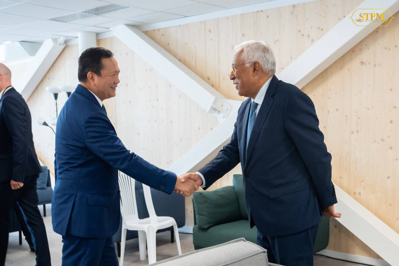 (នីស)៖ សម្តេចមហាបវរធិបតី ហ៊ុន ម៉ាណែត នាយករដ្ឋមន្ត្រីនៃព្រះរាជាណាចក្រកម្ពុជា អញ្ជើញជួបពិភាក្សាការងារទ្វេភាគីជាមួយឯកឧត្តម António Costa ប្រធានក្រុមប្រឹក្សាអឺរ៉ុប ក្នុងឱកាសសម្តេចធិបតីអញ្ជើញចូលរួមសន្និសីទរបស់អង្គការសហប្រជាជាតិស្តីពីមហាសមុទ្រលើកទី៣ (UNOC3) នៅទីក្រុងនីស ប្រទេសបារាំង នាព្រឹកថ្ងៃទី០៩ មិថុនា ២០២៥។