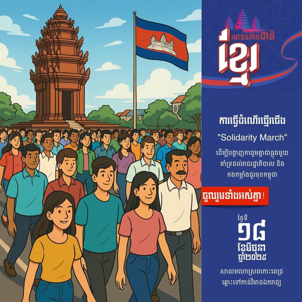 ការជួបជុំគ្នារបស់ ស.ស.យ.ក (Walking Solidarity) ដើរដោយថ្មើរជើងនេះ គឺជាព្រឹត្តិការណ៍មួយ បង្ហាញពីការសាមគ្គីភាពជាធ្លុងមួយរបស់ជួរមុខ និងជួរក្រោយ ដើម្បីលើកទឹកចិត្តដល់កងទ័ពជួរមុខរបស់យើង ដែលកំពុងប្រឈមជាមួយកងទ័ពថៃ ។