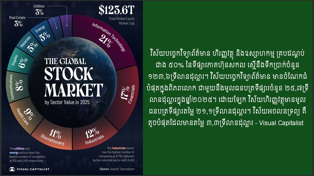 វិស័យធំៗទាំងបី ដែលគ្របដណ្ដប់ទីផ្សារភាគហ៊ុនពិភពលោកOne-Minuteអត្ថបទដោយ៖ឆាយ រត្ថា – Visual Capitalist #ams1minute ឆាយ រត្ថាលោក ឆាយ រត្ថា ជាបុគ្គលិកផ្នែកព័ត៌មានវិទ្យា នៃអគ្គនាយកដ្ឋានវិទ្យុ និងទូរទស្សន៍ អប្សរាអត្ថបទមុនអត្ថបទបន្ទាប់
