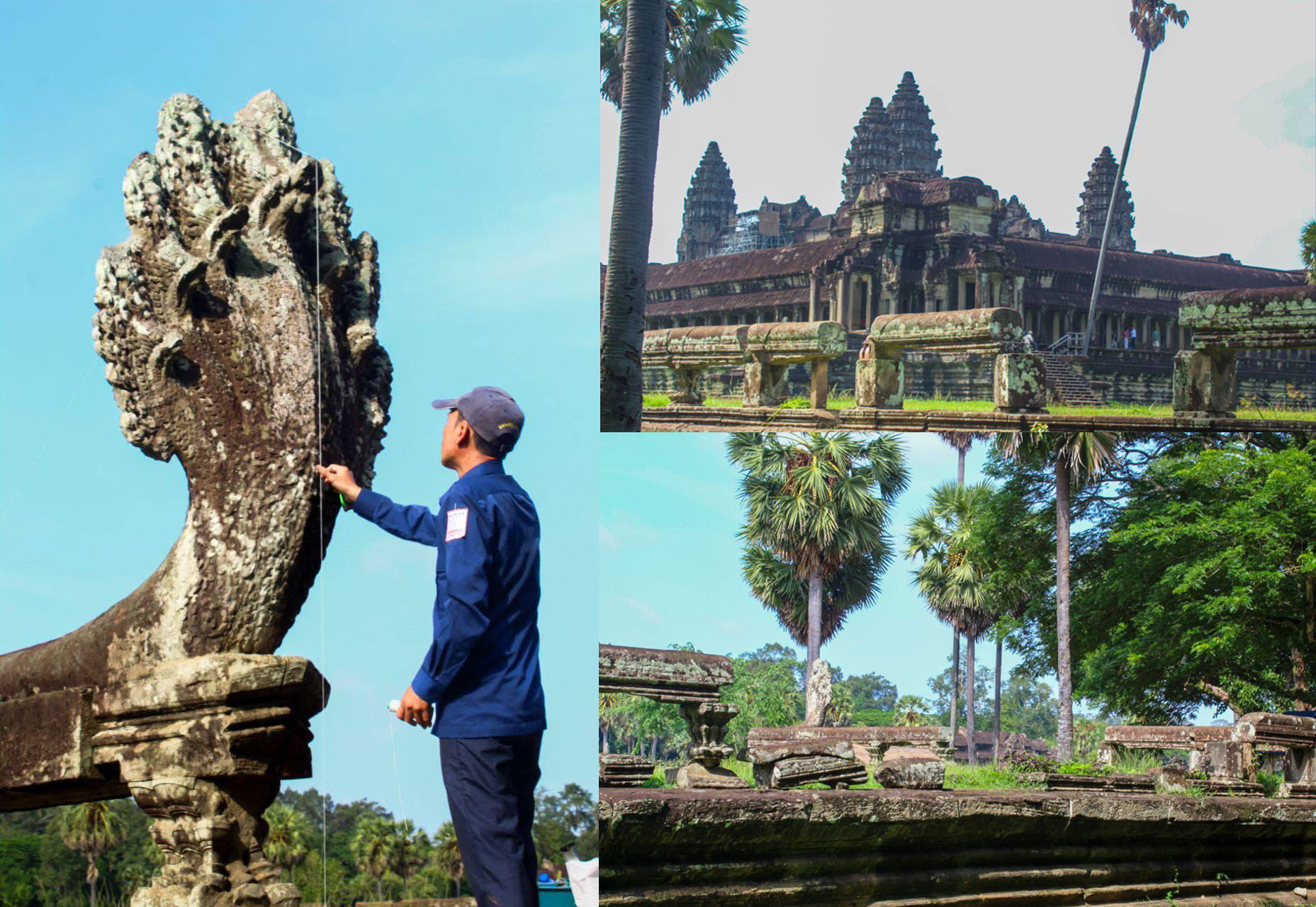 ក្រុមអ្នជំនាញធ្វើសម្រង់ប្លង់បង្កាន់ដៃនាគជុំវិញប្រាសាទអង្គរវត្ត