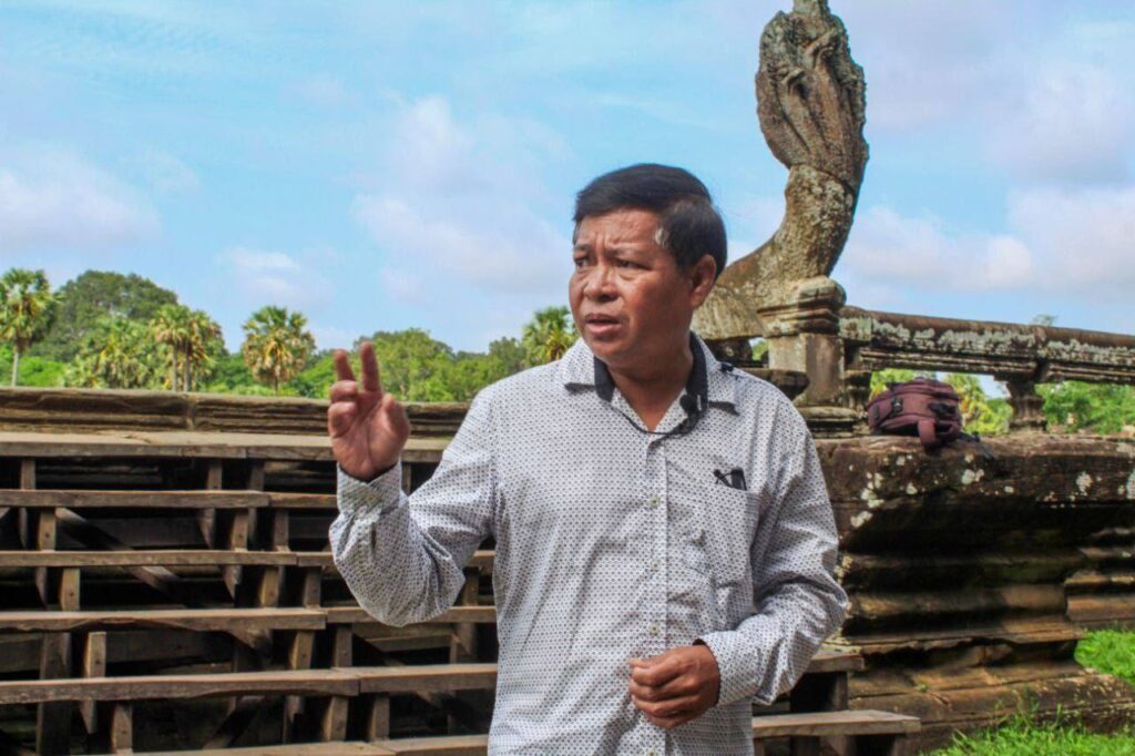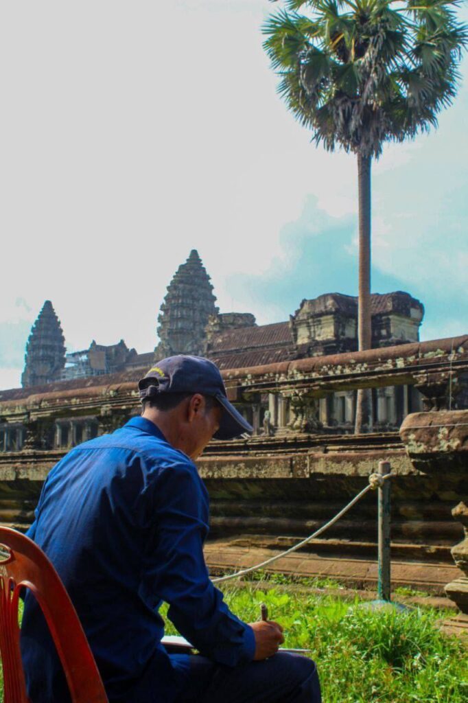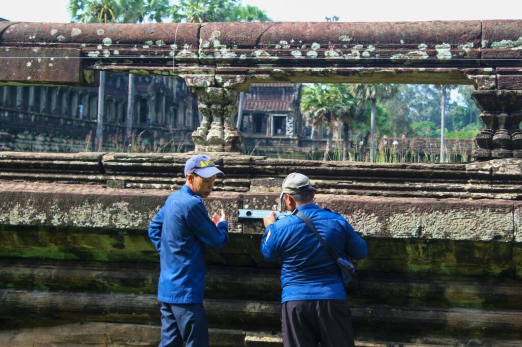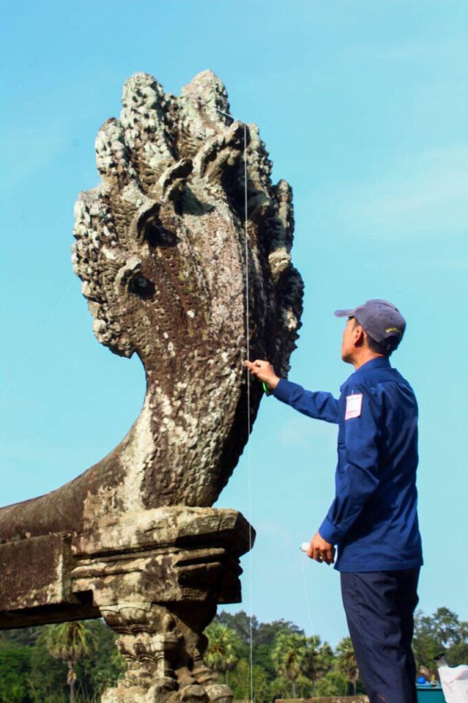 (ភ្នំពេញ)៖ ក្រុមអ្នកបច្ចេកទេសផ្នែកអភិរក្សថ្ម នៃអាជ្ញាធរជាតិអប្សរា ធ្វើការងារសម្រង់ប្លង់បង្កាន់ដៃនាគនៅខឿនជាន់ទី១ជុំវិញប្រាសាទអង្គរវត្ត ដើម្បីសិក្សានូវចំណុចហានិភ័យនៃរចនាសម្ពន្ធបង្កាន់ដៃនាគ មុននឹងឈានទៅដល់ការជួសជុលឱ្យរឹងមាំឡើងវិញ។