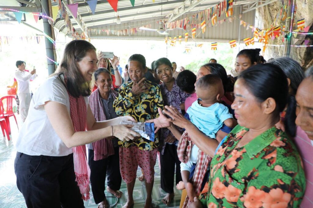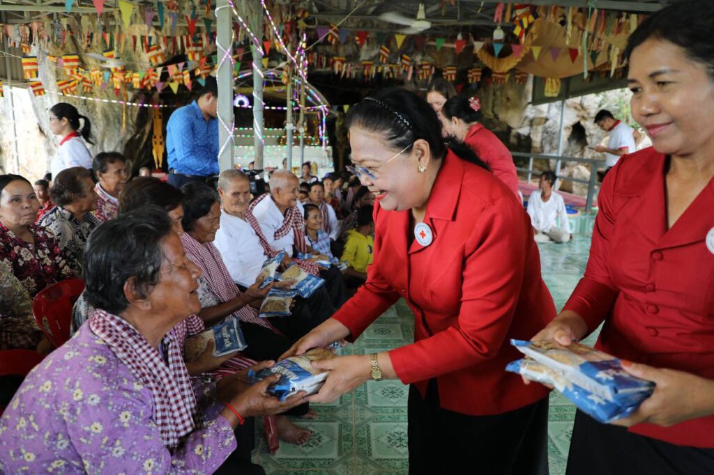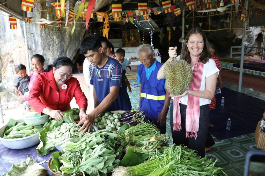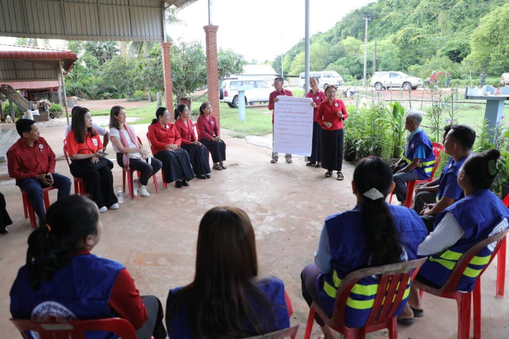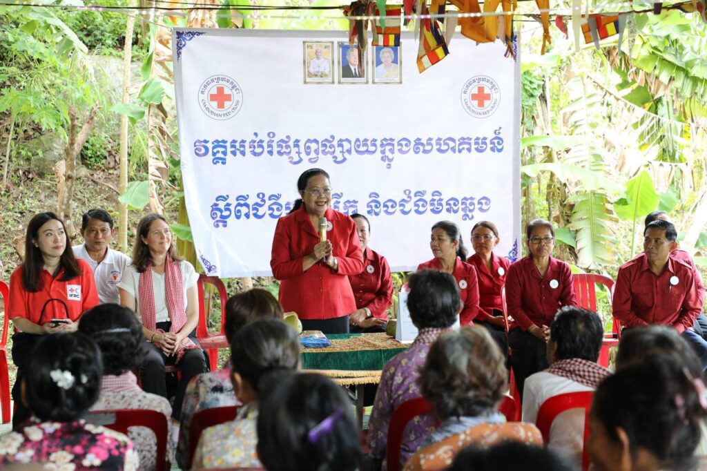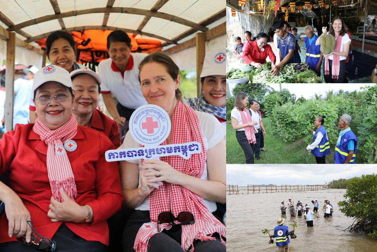 (ភ្នំពេញ)៖ គណៈប្រតិភូកាកបាទក្រហមកម្ពុជា ដឹកនាំដោយ លោកជំទាវ ម៉ែន នារីសោភ័គ អគ្គលេខាធិការរងទី១ និងគណៈប្រតិភូសហព័ន្ធអន្តរជាតិ នៃសមាគមកាកបាទក្រហម និងអឌ្ឍចន្ទក្រហម ដឹកនាំដោយលោកស្រី កាទ្រីន ក្លាកសុន (Kathryn Clarkson) ប្រធានប្រតិភូសហព័ន្ធអន្តរជាតិ និងជាតំណាងអង្គការសហប្រជាជាតិ ESCAP ប្រចាំប្រទេសកម្ពុជា ថៃ ឡាវ និងវៀតណាម បានអញ្ជើញទស្សនកិច្ចក្នុងសហគមន៍ ស្រុកទឹកឈូ ខេត្តកំពត ដើម្បីពិនិត្យមើលសកម្មភាពដែលកាកបាទក្រហមកម្ពុជា បាននិងកំពុងធ្វើដើម្បីសហគមន៍មានភាពធន់ សហគមន៍មានសុខភាពល្អ និងមានភាពធន់នឹងអាកាសធាតុ នាថ្ងៃទី២៤ ខែមិថុនា ឆ្នាំ២០២៥ ។
