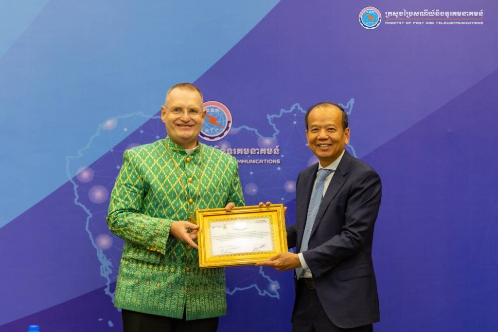 ភ្នំពេញ៖ ឯកឧត្តម ជា វ៉ាន់ដេត រដ្ឋមន្ត្រីក្រសួងប្រៃសណណីយ៍និងទូរគមនាគមន៍ បានអនុញ្ញាតលោក អូលីវីយេ ជ្មីតហស្លេរ អភិបាលព្រះសហគមន៍កាតូលិកភូមិភាគភ្នំពេញ ចូលជួបសម្តែងការគួរសម និងពិភាក្សាការងារ នៅទីស្តីការក្រសួងប្រៃសណីយ៍និងទូរគមនាគមន៍។