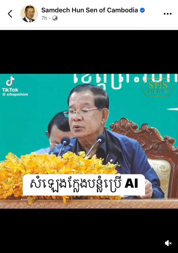 ក្រសួងប្រៃសណីយ៍ថ្កោលទោសយ៉ាងដាច់អហង្ការចំពោះជនអគតិដែលបានយករូបវីដេអូរបស់ សម្ដេចតេជោ ទៅកាត់តជាមួយសំឡេងក្លែងបន្លំដោយប្រើប្រាស់បញ្ញាសិប្បនិម្មិត