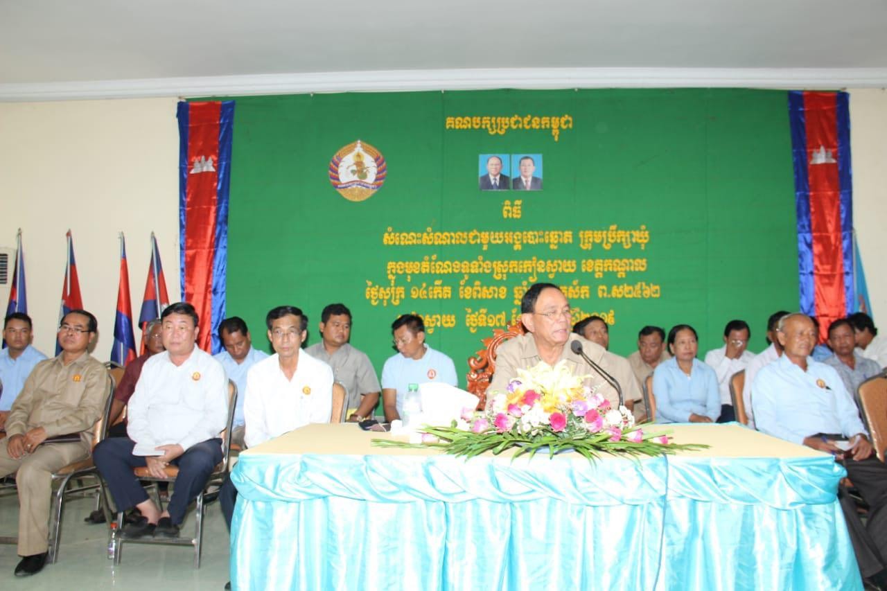 ឯកឧត្តមសន្តិបណ្ឌិត ឌុល គឿន បានអំពាវនាវអង្គបោះឆ្នោតទាំង៧១នាក់ នៃក្រុមប្រឹក្សាឃុំ សង្កាត់ក្នុងមុខតំណែងទូទាំងស្រុកកៀនស្វាយ សូមបោះឆ្នោតជូនគណបក្សប្រជាជនកម្ពុជាទាំងអស់គ្នា នៅថ្ងៃទី២៦ ខែឧសភា ឆ្នាំ២០១៩ខាងមុខ ដើម្បីធានាបាននូវសុខសន្តិភាព ការអភិវឌ្ឍប្រកបដោយចីរភាព លើកកម្ពស់កម្រឹតជីវភាពប្រជាពលរដ្ឋកាន់តែប្រសើរឡើង និងរស់នៅយ៉ាងសុខដុមរមនាក្នុងសង្គម គោរពតម្លៃមនុស្ស ប្រជាធិបតេយ្យ និងសេរីភាព។