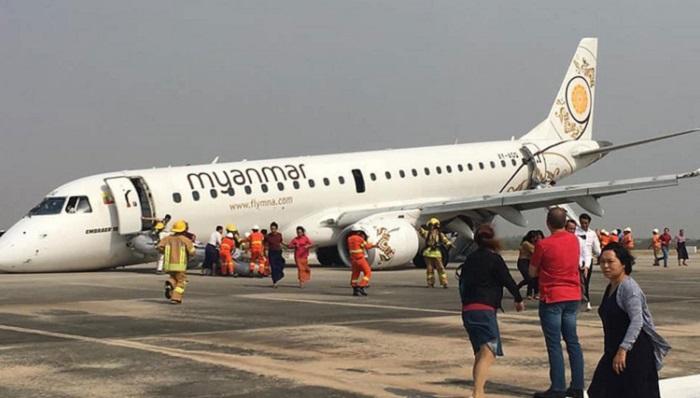 យន្តហោះផ្ទុកមនុស្ស៨៩នាក់ចុះចតដោយគ្មានកង់មុខ នៅមីយ៉ាន់ម៉ា